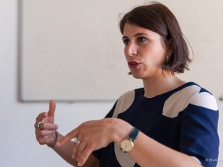 A rispondermi è Valeria, ma inizialmente lo fa senza usare le parole: con i palmi rivolti verso il basso allarga le dita e protende le mani davanti a sé.