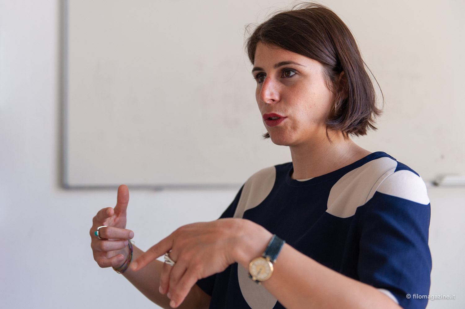 A rispondermi è Valeria, ma inizialmente lo fa senza usare le parole: con i palmi rivolti verso il basso allarga le dita e protende le mani davanti a sé.