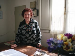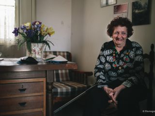 Questa signora, dagli occhi gentili truccati di azzurro chiaro, ci sorride, quasi come se fossimo i nipoti venuti a trovarla da lontano, e ci accoglie nella sua casa. Così conosciamo Mara Pazzi, un’anziana signora di 81 anni che da trent’anni fa la custode del cimitero ebraico. Non di origini ebree, ci racconta, alternando italiano a dialetto, di come sia arrivata in questo angolo di Ferrara: il marito conosceva la famiglia della custode precedente e così decise di trasferirsi qui con la moglie. Quando Mara e il marito arrivarono, la casa del custode era tutta sottosopra: c’erano topi, decine di bottiglie di vetro buttate alla rinfusa e muffa. Ma, come noi oggi, anche loro, all’epoca, non si sono lasciati ingannare dalla prima impressione e, dopo aver sistemato la casa, si sono trasferiti qui, di fianco al cimitero per custodirlo e aprirlo a chi desiderasse entrarvi a fare visita.