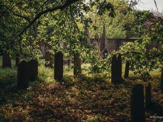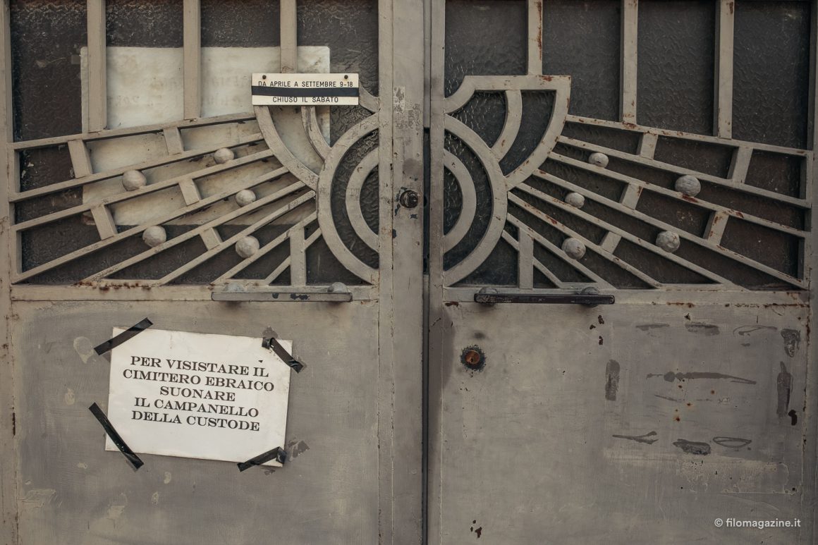 Dall’inizio di Via delle Vigne possiamo scorgere sulla linea dell’orizzonte, a chiudere la strada per la quale ci siamo incamminati, un imponente cancello di metallo incorniciato da pesanti pietre granitiche, poste lì quasi a voler incutere timore a chi si arrischi ad avvicinarsi: ci troviamo di fronte all’ingresso del cimitero ebraico di Ferrara. Se pure a prima vista possa dare l’impressione di trovarsi di fronte a un luogo inespugnabile, il cui ingresso sia riservato ai soli autorizzati, non ci si deve lasciare scoraggiare: dietro quel portale si celano, in realtà, prati fioriti, intrecci di rami, lapidi semplici e maestose che fanno di questo rettangolo di terra al lato delle mura estensi un piccolo scrigno pieno di meraviglie da scoprire.