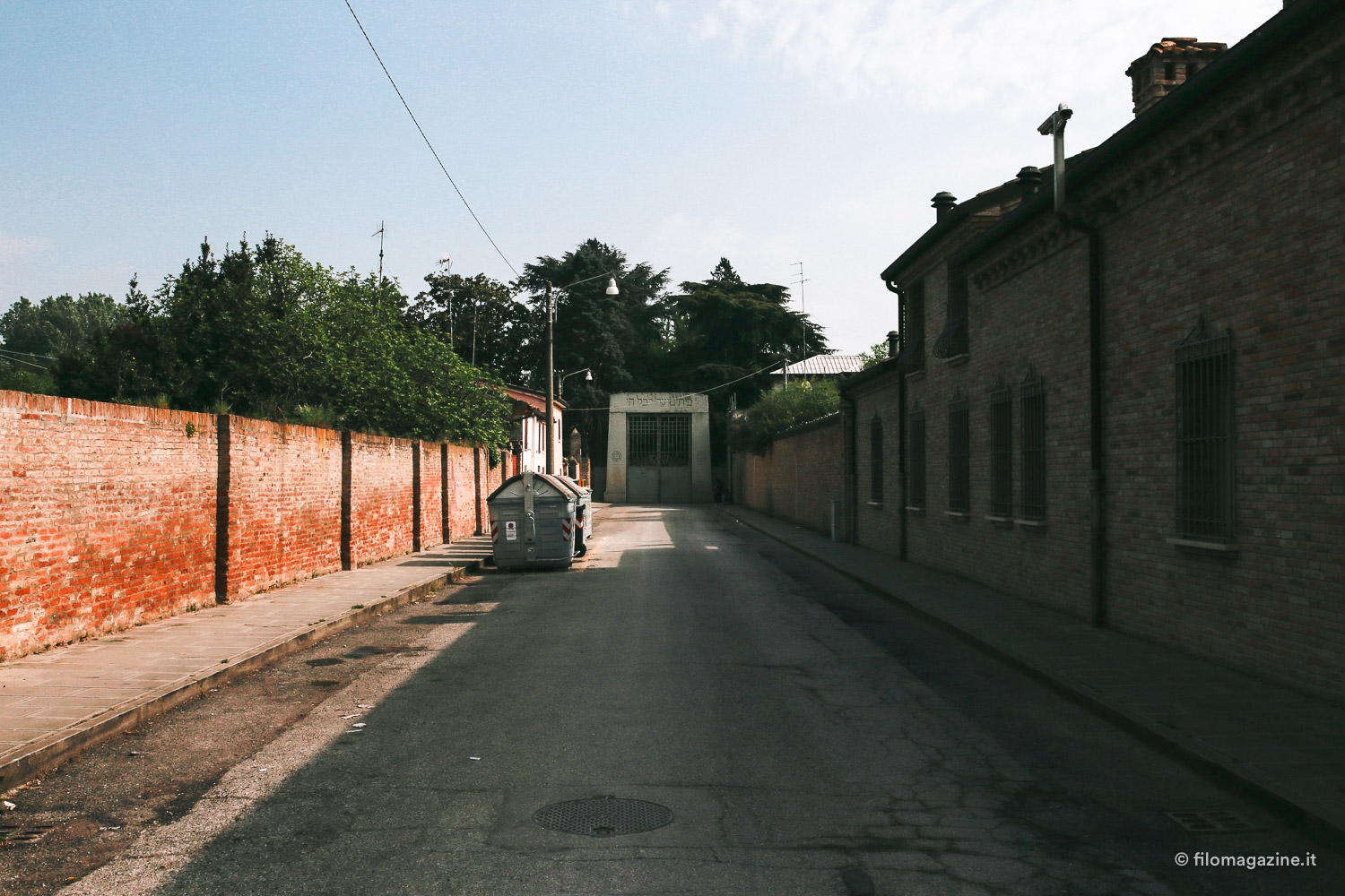 Dall’inizio di Via delle Vigne possiamo scorgere sulla linea dell’orizzonte, a chiudere la strada per la quale ci siamo incamminati, un imponente cancello di metallo incorniciato da pesanti pietre granitiche, poste lì quasi a voler incutere timore a chi si arrischi ad avvicinarsi: ci troviamo di fronte all’ingresso del cimitero ebraico di Ferrara. Se pure a prima vista possa dare l’impressione di trovarsi di fronte a un luogo inespugnabile, il cui ingresso sia riservato ai soli autorizzati, non ci si deve lasciare scoraggiare: dietro quel portale si celano, in realtà, prati fioriti, intrecci di rami, lapidi semplici e maestose che fanno di questo rettangolo di terra al lato delle mura estensi un piccolo scrigno pieno di meraviglie da scoprire.