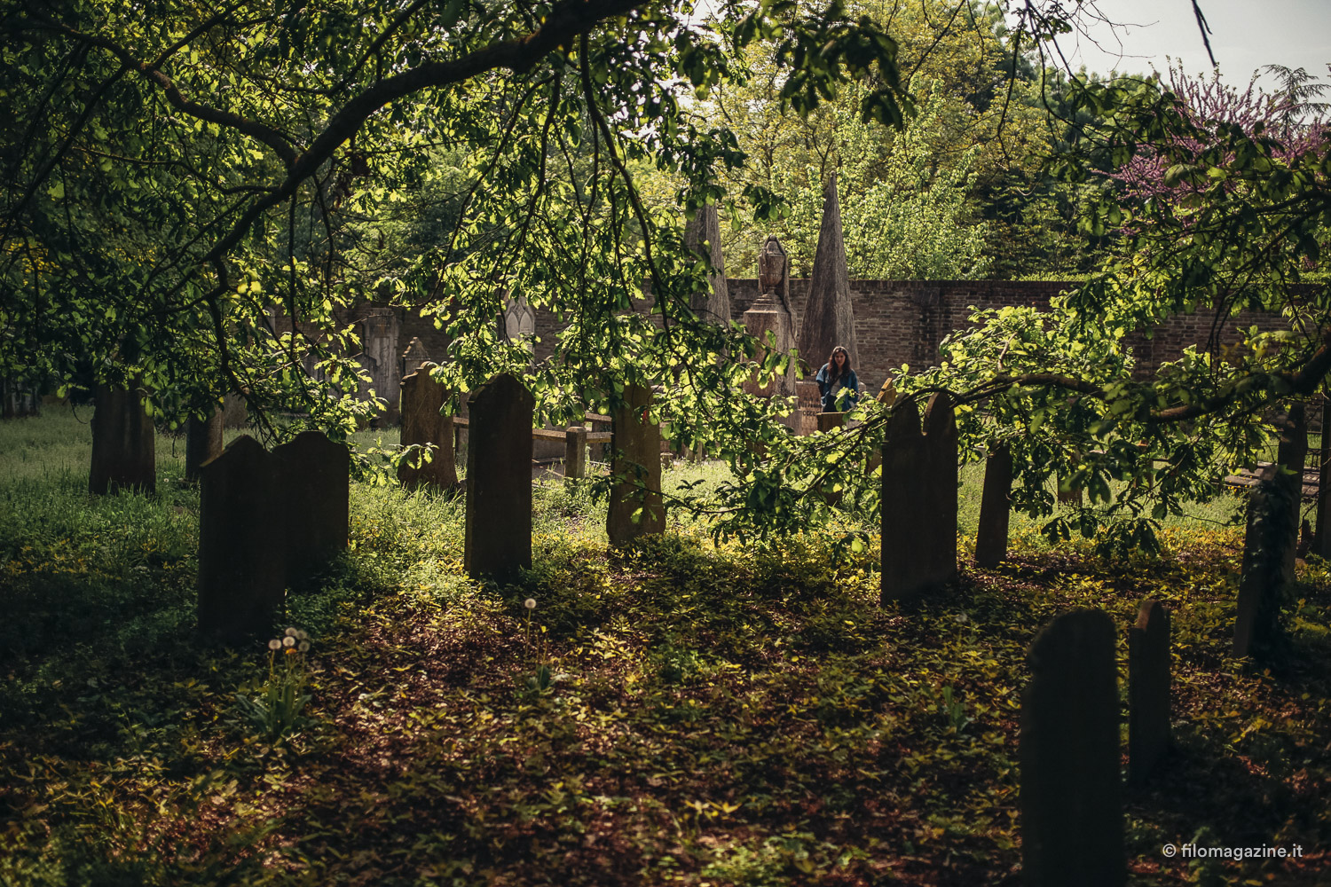 Alla fine verso l’uscita, incrociamo una scolaresca che ascolta attenta le parole di una guida: ci rendiamo conto di non avere conosciuto molto di più della cultura ebraica, di uscire forse con più domande che risposte. Capiamo anche che probabilmente l’articolo non sarà molto utile a chi lo avesse iniziato a leggere sperando di conoscere chissà quali notizie sul cimitero, ma forse proprio qui sta il bello di questo posto: lo si può capire, si può entrare in comunicazione con esso anche senza avere una guida alla mano, se ne può percepire la memoria camminandoci semplicemente attraverso, lasciandosi catturare lo sguardo dai nomi incisi sulle tombe e dalla natura che custodisce attenta le loro storie.