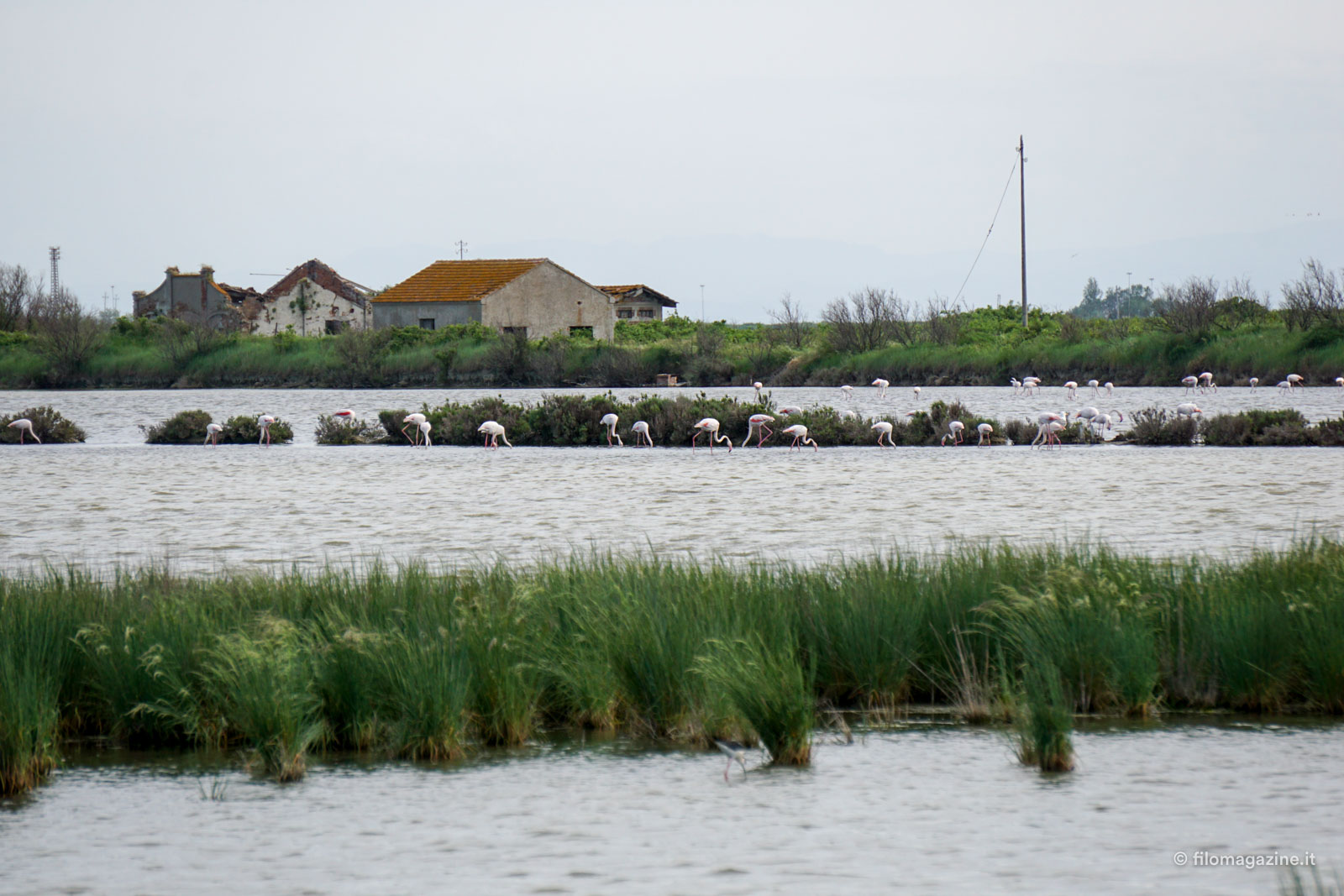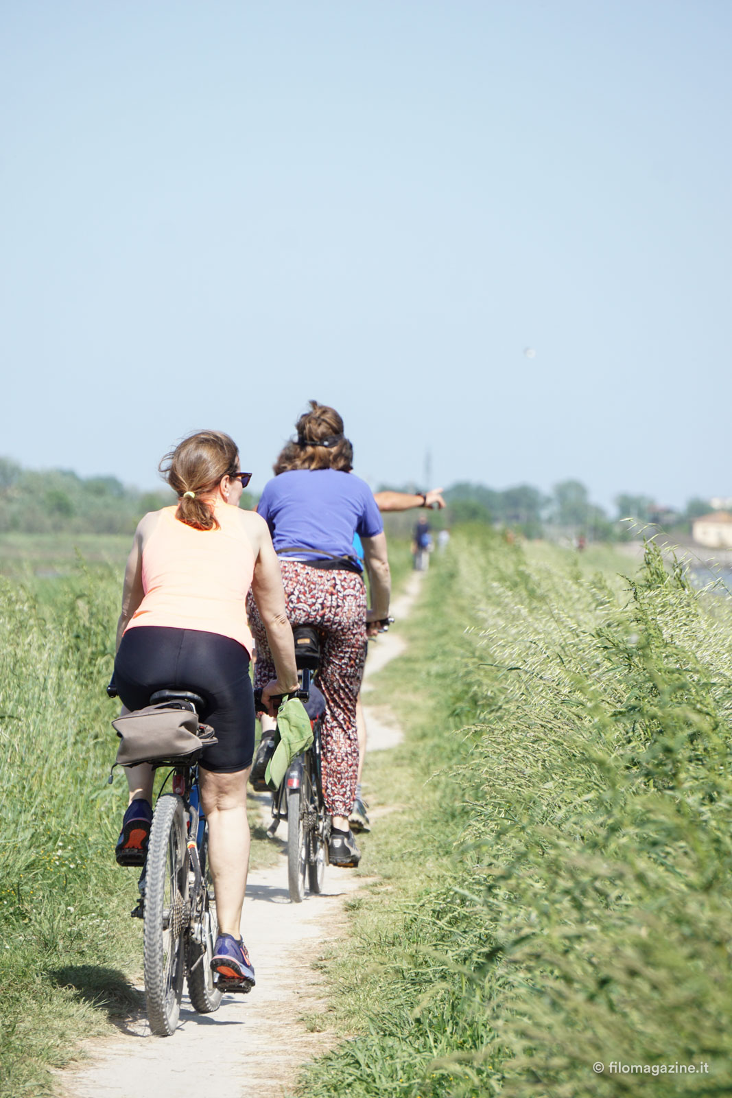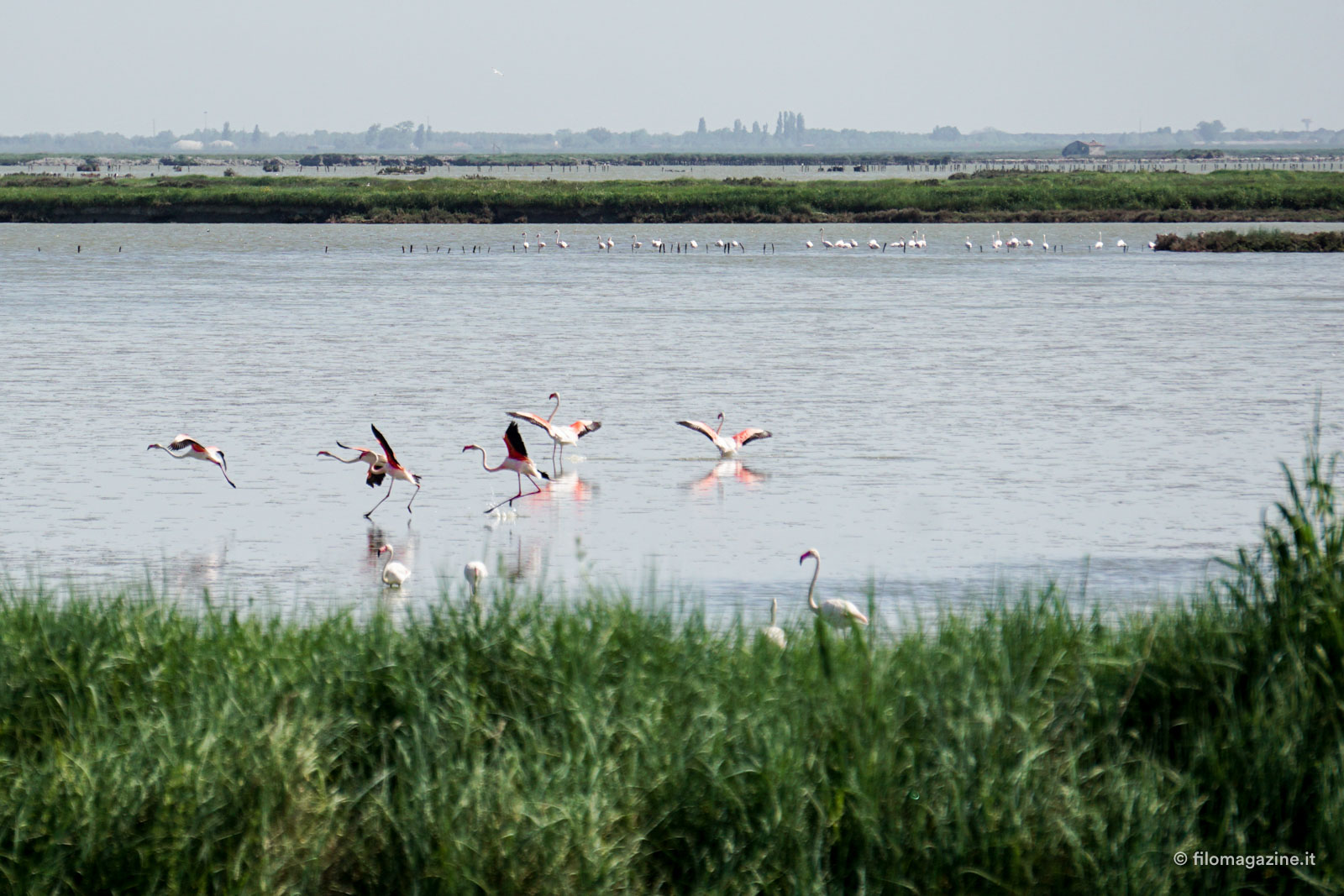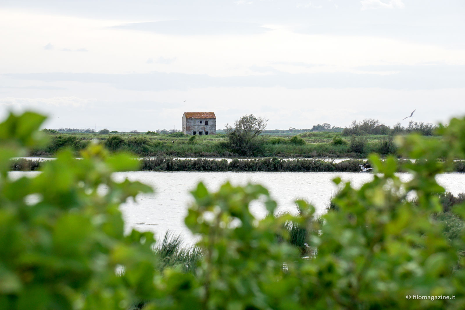 Tramonti che dalla sfumatura più tenue del rosa, piano piano, diventano rossi, cieli velati, campagne verdi, valli, lagune e dune, pescatori e miriadi di uccelli, e soprattutto lei, l’acqua. Acqua che si mescola, tanto che ci devi mettere un dito dentro e assaggiarla per capire se è salata o no, se è già mare o ancora fiume.