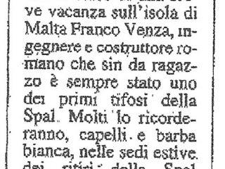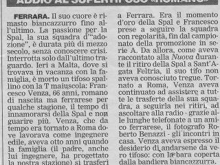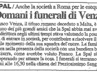 Perché per Franco la SPAL era davvero qualcuno della famiglia. E se in tutta la sua vita da tifoso innamorato ha vissuto le sconfitte come un lutto, nel 2003 è la SPAL che ha giocato una partita con il lutto al braccio e osservando un minuto di silenzio perché se ne era andato uno di famiglia, se ne era andato il supertifoso romano Francesco Venza.