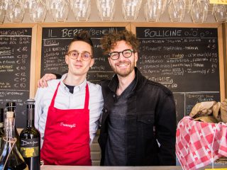No, no, no, non faceva proprio per me. Ci ho provato, ma c’è un grosso ostacolo: il sangue. Ho proprio la fobia. Tutte le volte che mi sono tagliato, o ho solo rischiato, e in una macelleria capita, mi sono sentito male. È un’eredità che ha raccolto mio fratello: di fatto lui lavora in macelleria, che è collegata a Retrobottega ed è lui che seleziona le carni che poi serviamo nel locale. Siamo perfettamente complementari io e Francesco: lui è il preciso, il pragmatico, non gli pesano le levatacce imposte dalla macelleria mentre io sono quello che rimane fino a tardi a parlare con gli ultimi clienti; ci compensiamo così, e funzioniamo.