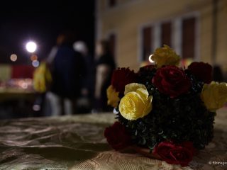 Agli occhi di un profano, il dietro le quinte con il suo folklore, non risulta essere così limpido; si percepisce una netta cesura, in città, che separa in maniera drastica i contradaioli, ovviamente pro Palio, dagli outsider, generalmente anti Palio. Non credo esista una costante che spieghi l’avvicinamento ad un emblema; potrebbe essere una tradizione familiare, magari l’introduzione da parte di un gruppo di amici, una pura e semplice necessità di appartenenza, fatto sta che un gruppo eterogeneo di persone si trova a convivere con questo obiettivo comune mentre un altro, ahimè, non lo comprende. Io faccio parte, da sempre, di quella schiera di persone che non comprendono il Palio, ma con un’innata curiosità nei confronti delle cose che non conosco. Io ed Andrea, l’autore delle fotografie, abbiamo preso la palla al balzo quando si è presentata l’opportunità di vivere una sera da contradaioli, e abbiamo chiacchierato di queste dinamiche che animano la tradizione ferrarese, fino a concepirne la struttura. Conservo solo un dubbio, che non sono stata in grado di chiarire nemmeno durante la notte che sto per raccontarvi: la Corte Ducale, cos’è?!