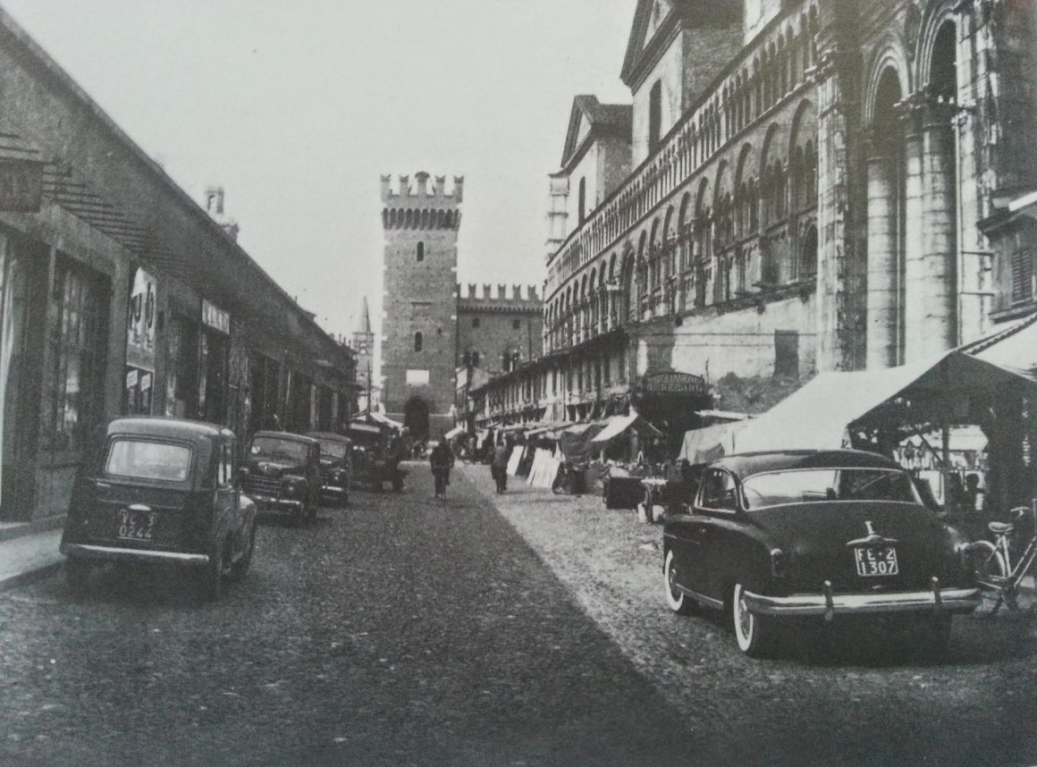 Quanto è bella Ferrara lo so da me! Lo era anche prima, da sempre. Lo era in modo diverso, quando cioè non esistevano tutti quei bellissimi e moderni edifici che vennero poi. Quando arrivo, ad esempio, nel mezzo di piazza Trento Trieste e mi guardo attorno, non posso non notare la mutilazione dei portici del Duomo che, prima di quel maledetto 28 Gennaio ’44 , arrivavano fino a ridosso del campanile. Mi giro verso la parte sud della piazza ed ecco la chiesa e il chiostro di S.Romano prepotentemente in bella mostra. Con le loro masse pulite e assolutamente proporzionate, appagano anche l’osservatore più competente. D’improvviso, in un involontario raffronto, mi tornano alla mente le immagini che ero abituato a vedere fin dall’infanzia. Prima com’era?