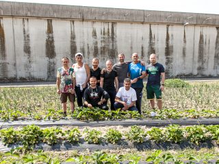 Forse è davvero l’unico orto biologico e a km 0 della città. E l’abbiamo potuto verificare assaggiando le buone fragole che ci hanno preparato. E qualcuno dei visitatori, grazie alla generosità dei detenuti, se ne è andato a casa con addirittura una cassetta piena di fragole, che, ad ogni passo, è stata arricchita dai detenuti da cipolle, origano e quanto di buono abbiamo incontrato.