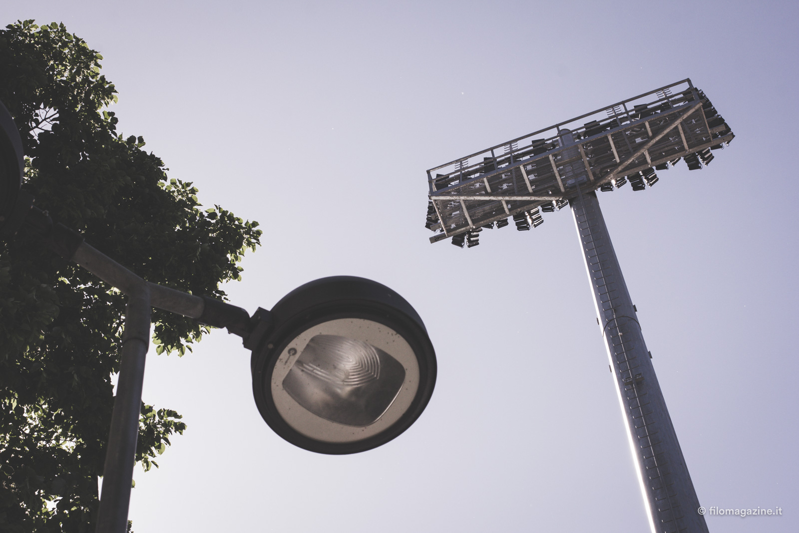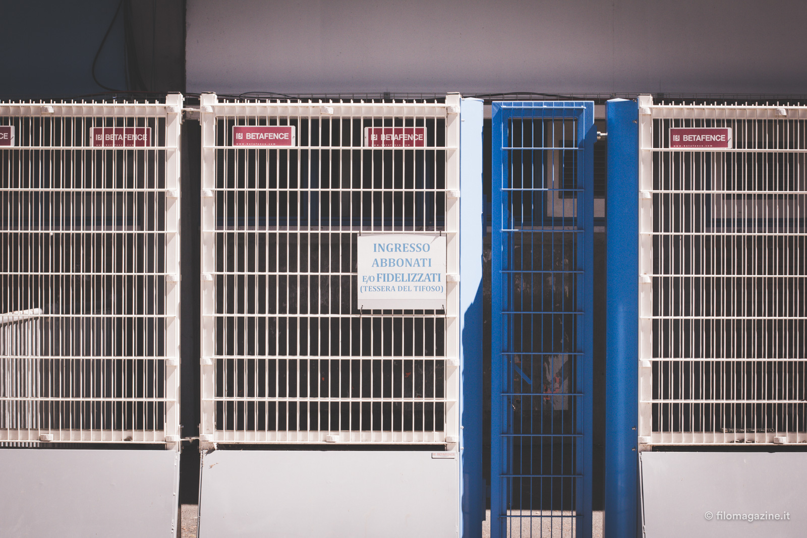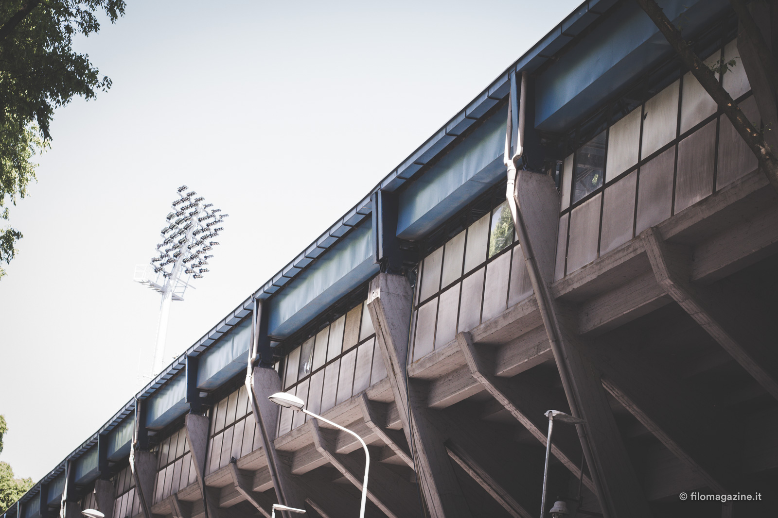 Tempio profano dove liberare pensieri, parole e gesti figli del caos, o luogo di culto da frequentare obbedendo rigorosamente ai suoi precetti non scritti, lo stadio rappresenta un elemento che racconta tanto dei nostri modi di rapportarci alle cose. La materialità della sua forma sembra indicarci un presidio nel quale trovare riparo, mentre il tessuto urbano è in movimento. Una certezza da coltivare periodicamente, che magari si misura dalla forza di resistere alle intemperie, perfino dalla ruggine che invade gli angoli delle sue strutture. Eppure, quella capacità di contenere il tempo passa in secondo piano quando ci si accorge che più che un contenitore, lo stadio è un distributore di contenuti. Ogni volta, scandito da una partita diversa, da una gioia, da un rammarico, da un’attesa insperata, quell’insieme assemblato di segmenti di cemento e metallo, restituisce qualcosa in chi guarda. E sta alla sensibilità percettiva degli occhi dello spettatore, cogliere il regalo elargito.