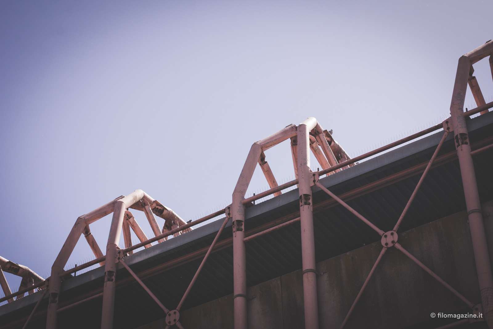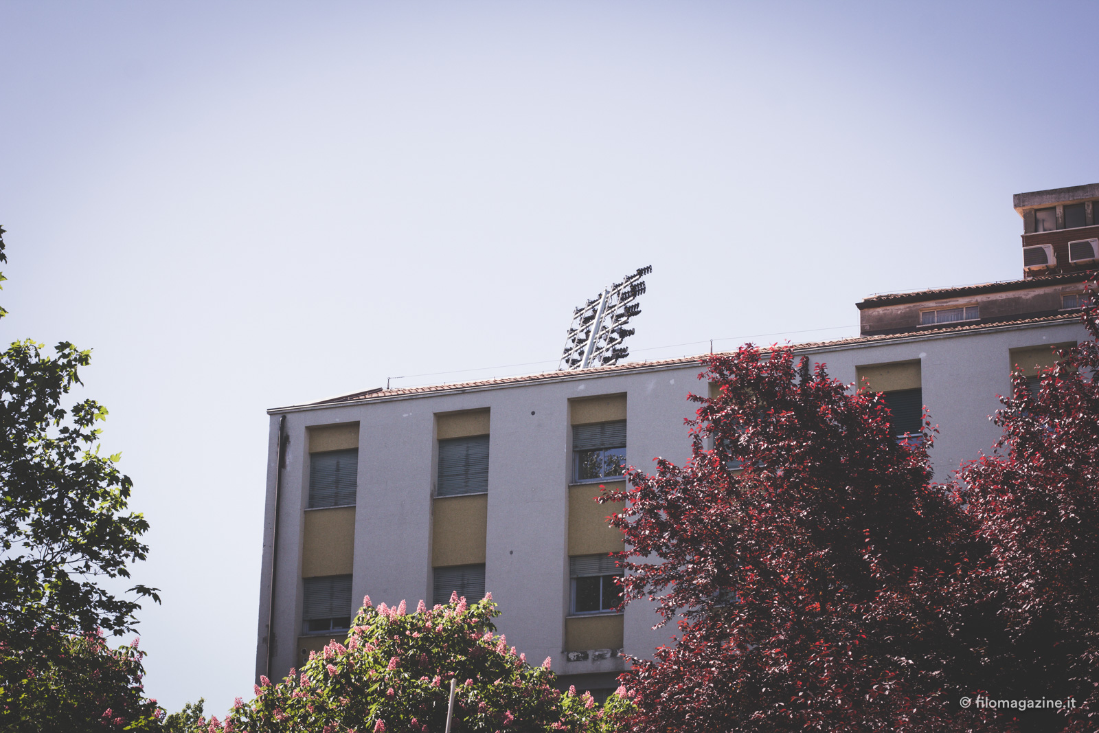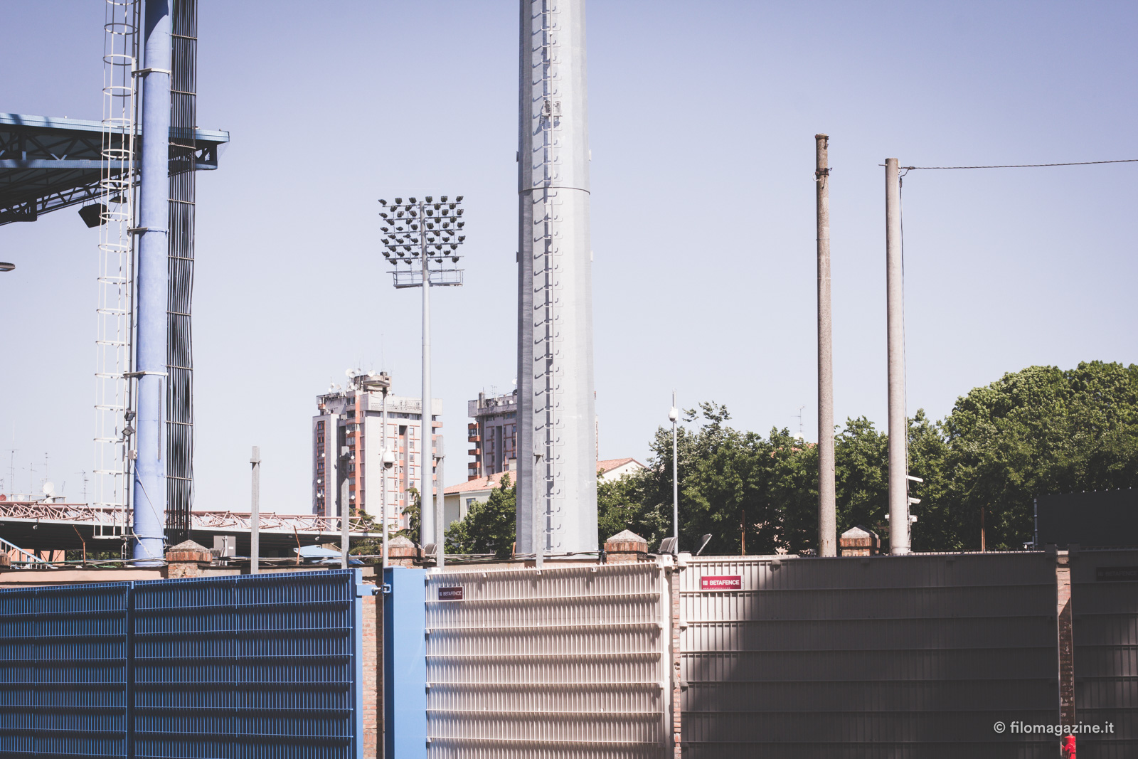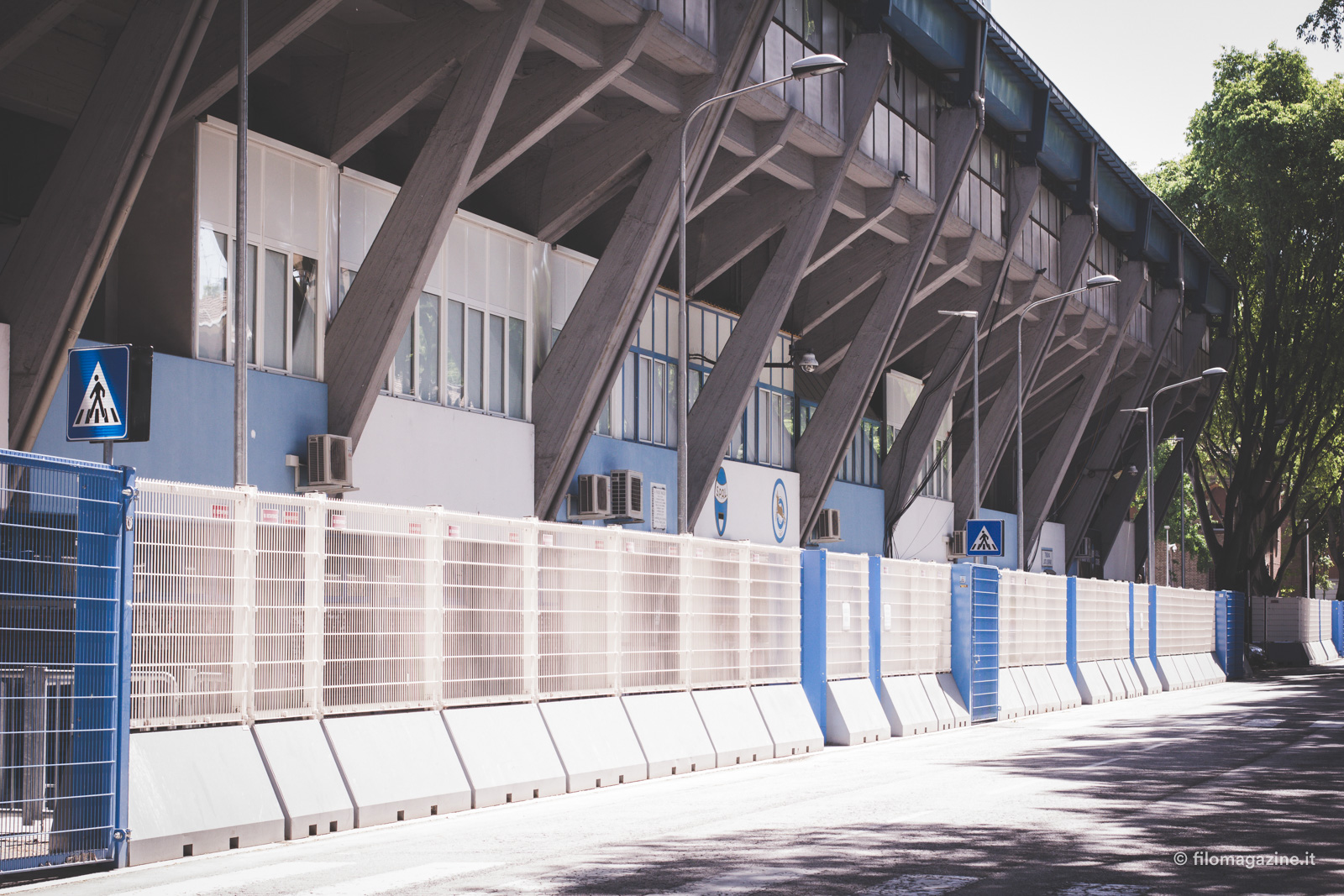 Tempio profano dove liberare pensieri, parole e gesti figli del caos, o luogo di culto da frequentare obbedendo rigorosamente ai suoi precetti non scritti, lo stadio rappresenta un elemento che racconta tanto dei nostri modi di rapportarci alle cose. La materialità della sua forma sembra indicarci un presidio nel quale trovare riparo, mentre il tessuto urbano è in movimento. Una certezza da coltivare periodicamente, che magari si misura dalla forza di resistere alle intemperie, perfino dalla ruggine che invade gli angoli delle sue strutture. Eppure, quella capacità di contenere il tempo passa in secondo piano quando ci si accorge che più che un contenitore, lo stadio è un distributore di contenuti. Ogni volta, scandito da una partita diversa, da una gioia, da un rammarico, da un’attesa insperata, quell’insieme assemblato di segmenti di cemento e metallo, restituisce qualcosa in chi guarda. E sta alla sensibilità percettiva degli occhi dello spettatore, cogliere il regalo elargito.