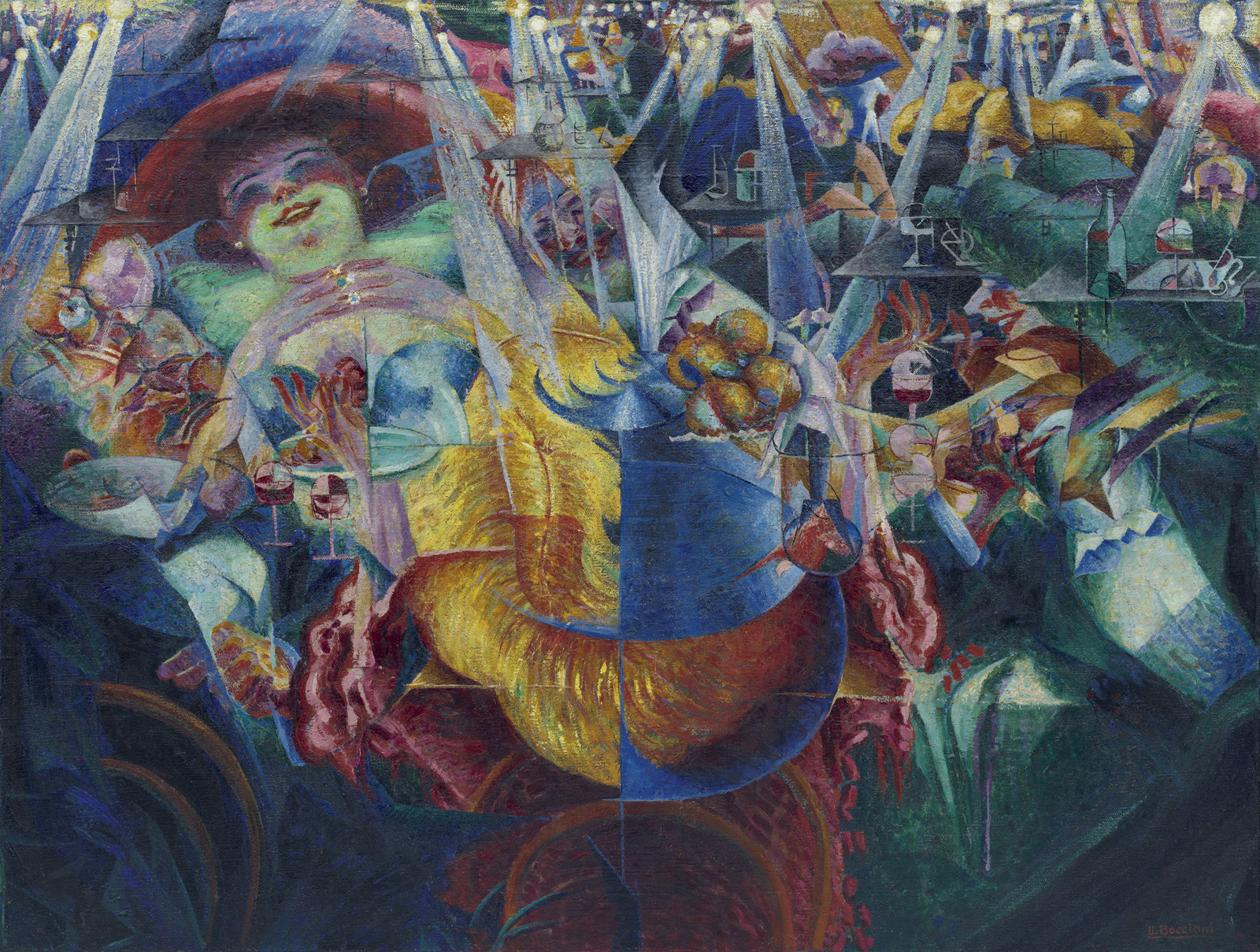 Ma gli “Stati d’Animo” sono ancora oltre, e si ritrovano in un omonimo trittico del Boccioni, esempio perfetto di quella sintesi realizzatasi nella linea, nella forma, nell’idea del futurismo. E a chiudere, una Risata prorompente, che torna dal MOMA di New York invadendo tutta la sala e allietando lo sguardo dello spettatore con una sovrapposizione di oggetti, colori e volti, tutti elementi di una tela dalla dinamicità tipica del neonato movimento di Boccioni.