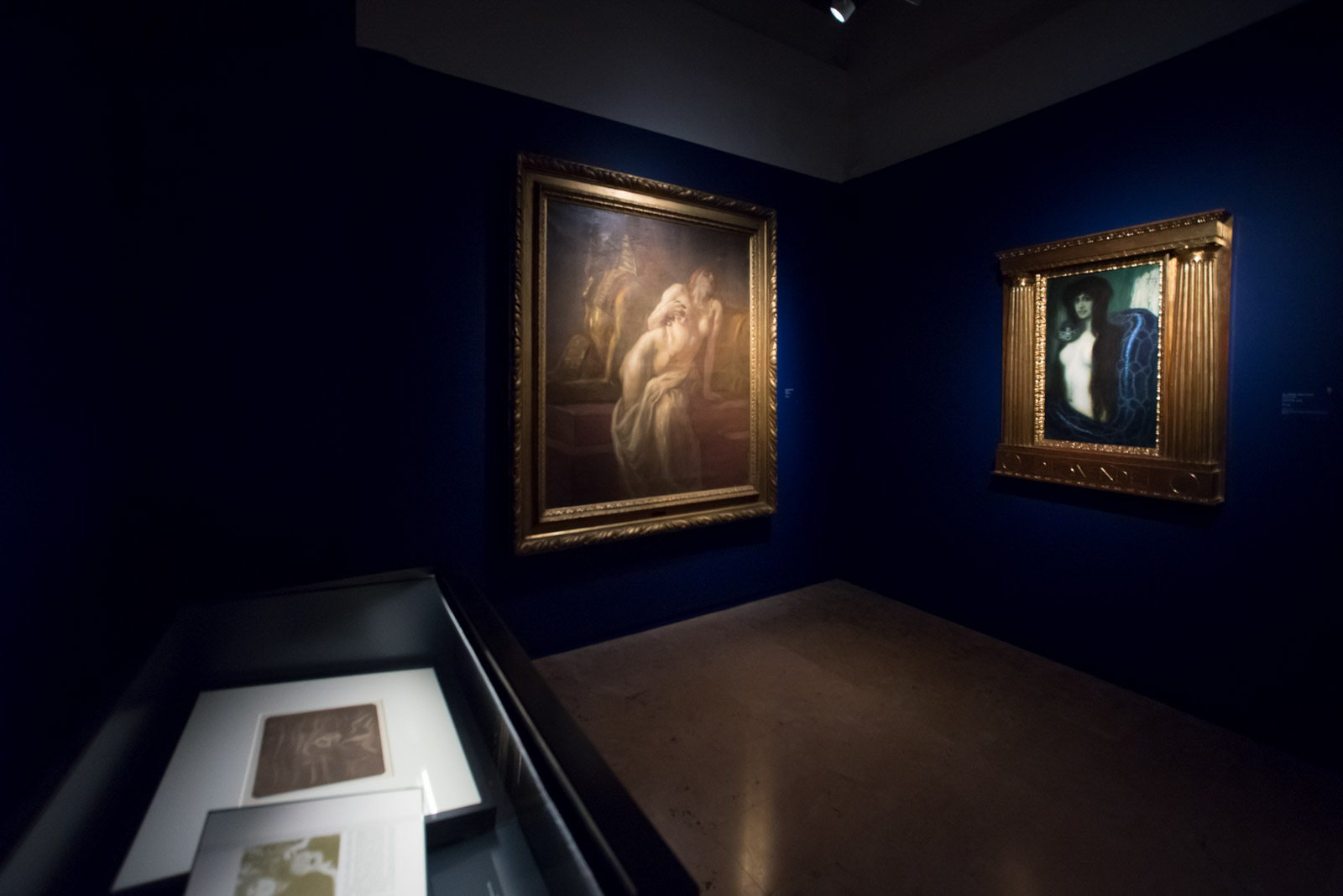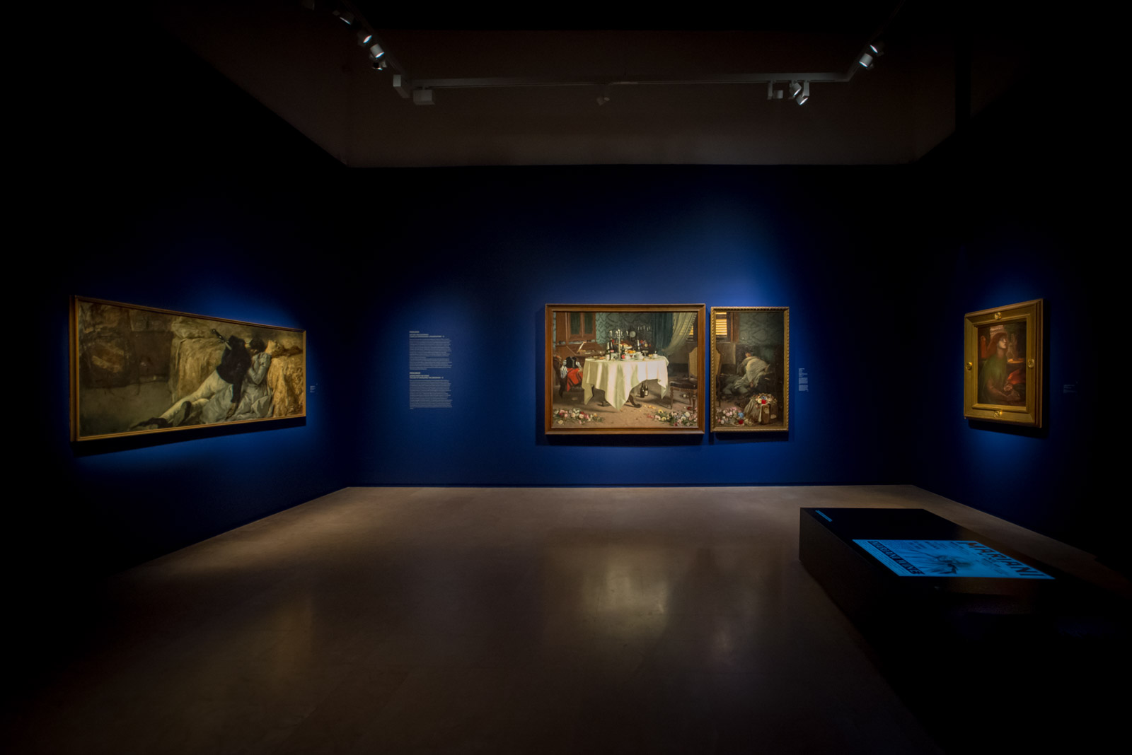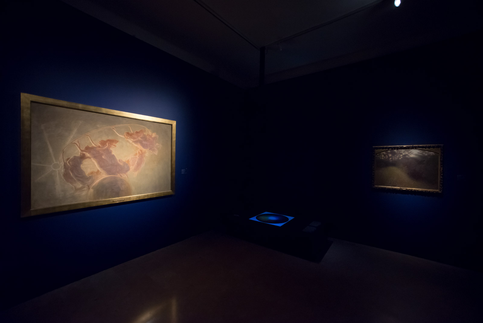 Le Sale del Palazzo di Diamanti si susseguono senza una vera e propria interruzione, rievocando quella sensazione labirintica ma non disorientante, di un’Odissea attraverso la nostra stessa persona. Turbati dagli autoritratti di Segantini e Boccioni siamo vittime dell’Asfissia di Morbelli, con le due tele finalmente riunite dopo anni di distanza (la parte sinistra è un prestito della GAM di Torino, la parte destra appartiene ad una collezione privata) e successivamente travolti dalla malinconia dello sguardo assente di Santina Negri, volto dei manifesti della mostra. La malinconia cede il posto all’armonia, alla rêverie, ma anche a quegli universi interiori di cui proviamo a sigillare le porte. Capolavori di grafica, veri e propri incubi della psiche di Alberto Martini e la concitata violenza dei centauri di De Chirico, aprono un varco verso i mondi della paura, del terrore, degli istinti ferini, tutto per lasciare gradualmente spazio a un abbagliante luce di miele proveniente dalla Danza delle Ore del Previati.