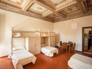 In alcune camere, sono stati integralmente sostituiti gli arredi e in tutti i letti sono stati posizionati nuovi materassi ortopedici, anallergici e ignifughi. Lenzuola e copriletti nuovi completano l’arredo delle camere, che sono singole, doppie/matrimoniali, settuple e quadruple sia ad uso esclusivo che condivise.