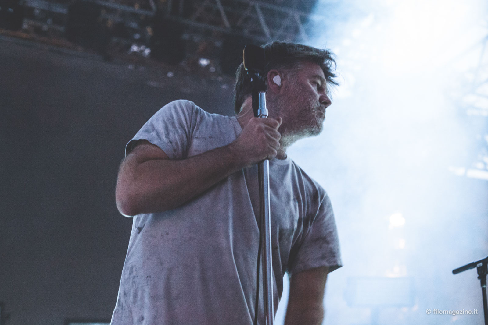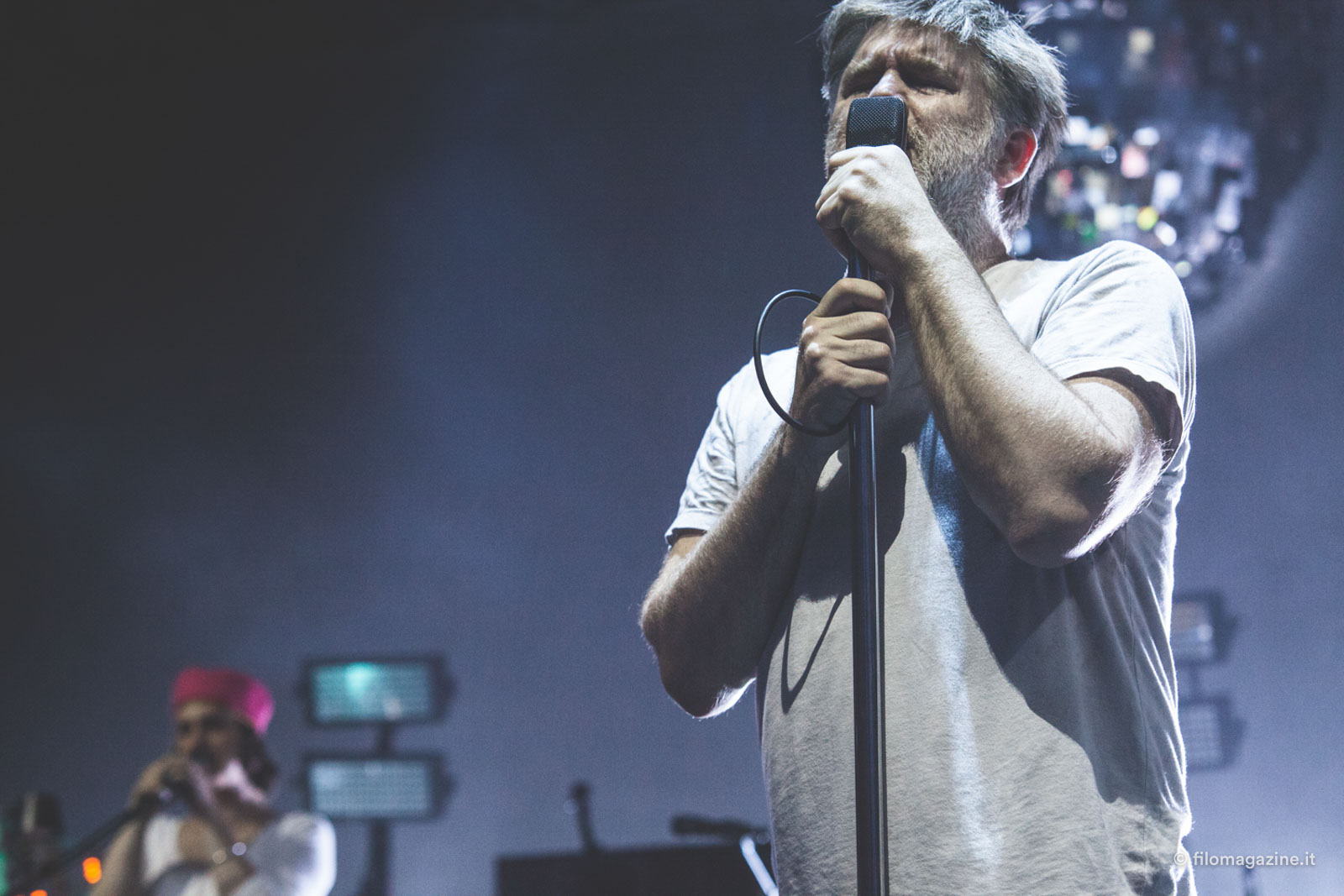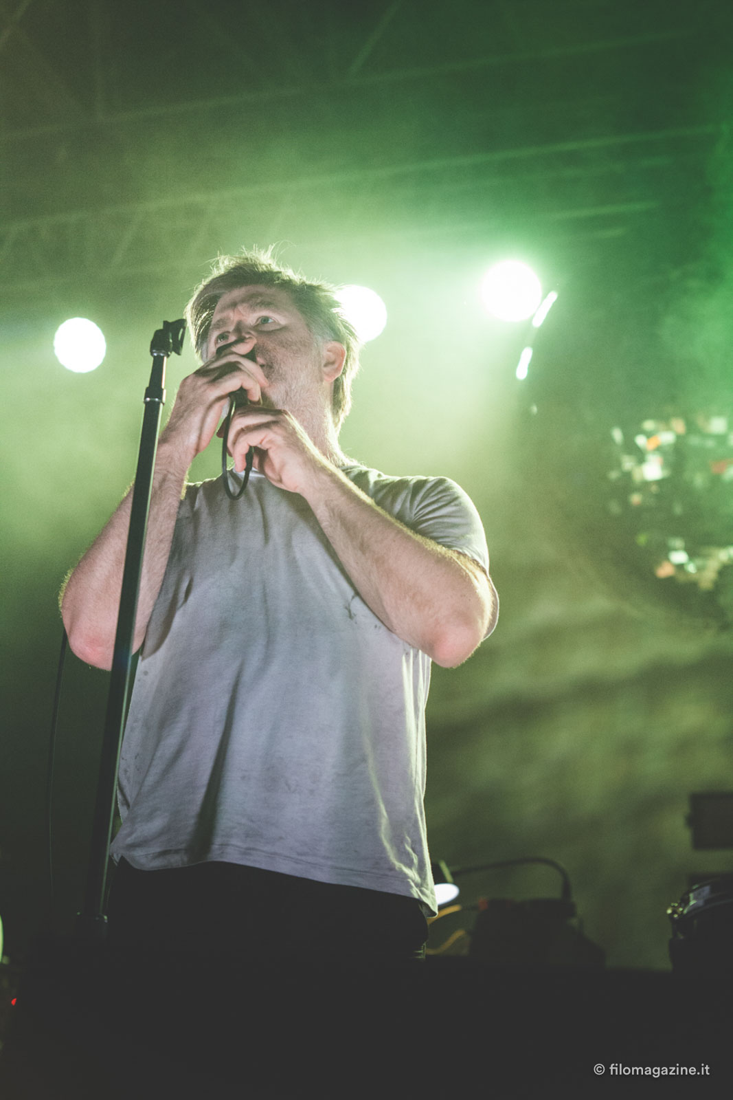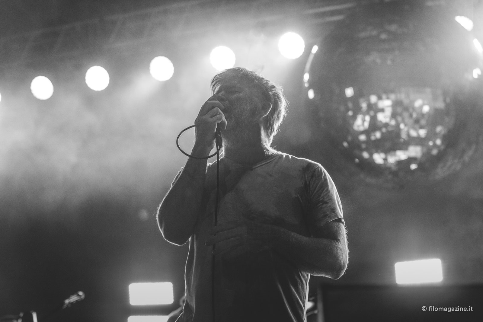 Penso anche che molto abbia fatto, per gli LCD Soundsystem, il crescendo lirico di Murphy, che non solo ci vede lungo dal punto di vista di creazione e produzione di pezzi, ha un fiuto eccezionale per le stratificazioni di suoni e generi vincenti, ma possiede anche una scrittura diretta e soprattutto con cui è facilissimo simpatizzare. Dopo di che possiamo discutere di quanto interessi al pubblico preso bene di sto spiegone, possiamo dire che non gliene frega niente e io potrei rispondere “Meglio così”. Sì perché per una volta ho visto (ad un evento così grosso) un pubblico totalmente assorbito dal live: gente a cui non importava essere lì per presenzialismo o per scattare il selfone dell’estate, ma per godere di un gruppo che sa creare una performance degna di essere chiamata tale.