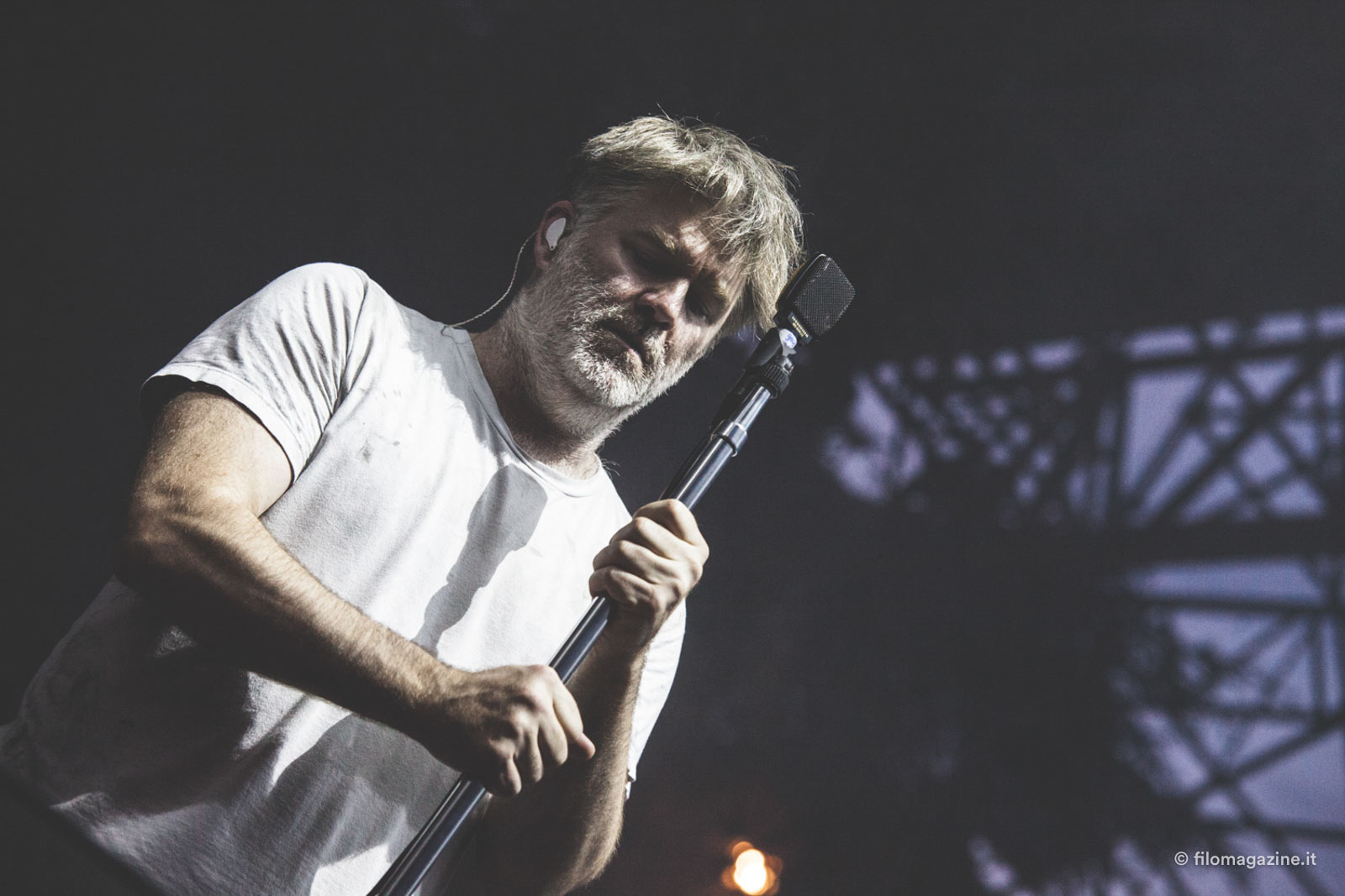 Murphy annuncia che lasceranno il palco per andare in bagno, di non pensare lo facciano per essere acclamati per un bis e tutti ridono, io compresa, come se stessimo ascoltando una battuta dell’unico parente cool in famiglia. Escono su uno dei miei pezzi preferiti dell’ultimo disco, “How do you sleep”, una marcia scura e ossessiva, che getta il pubblico in un inevitabile trance new wave. La serata è talmente bella che mi dimentico subito di aver quasi fatto un volo sul pavimento vissuto del bagno chimico mentre facevo pipì. Molti anni di vita persi per lo spavento ma subito pronti a tornare in pista.