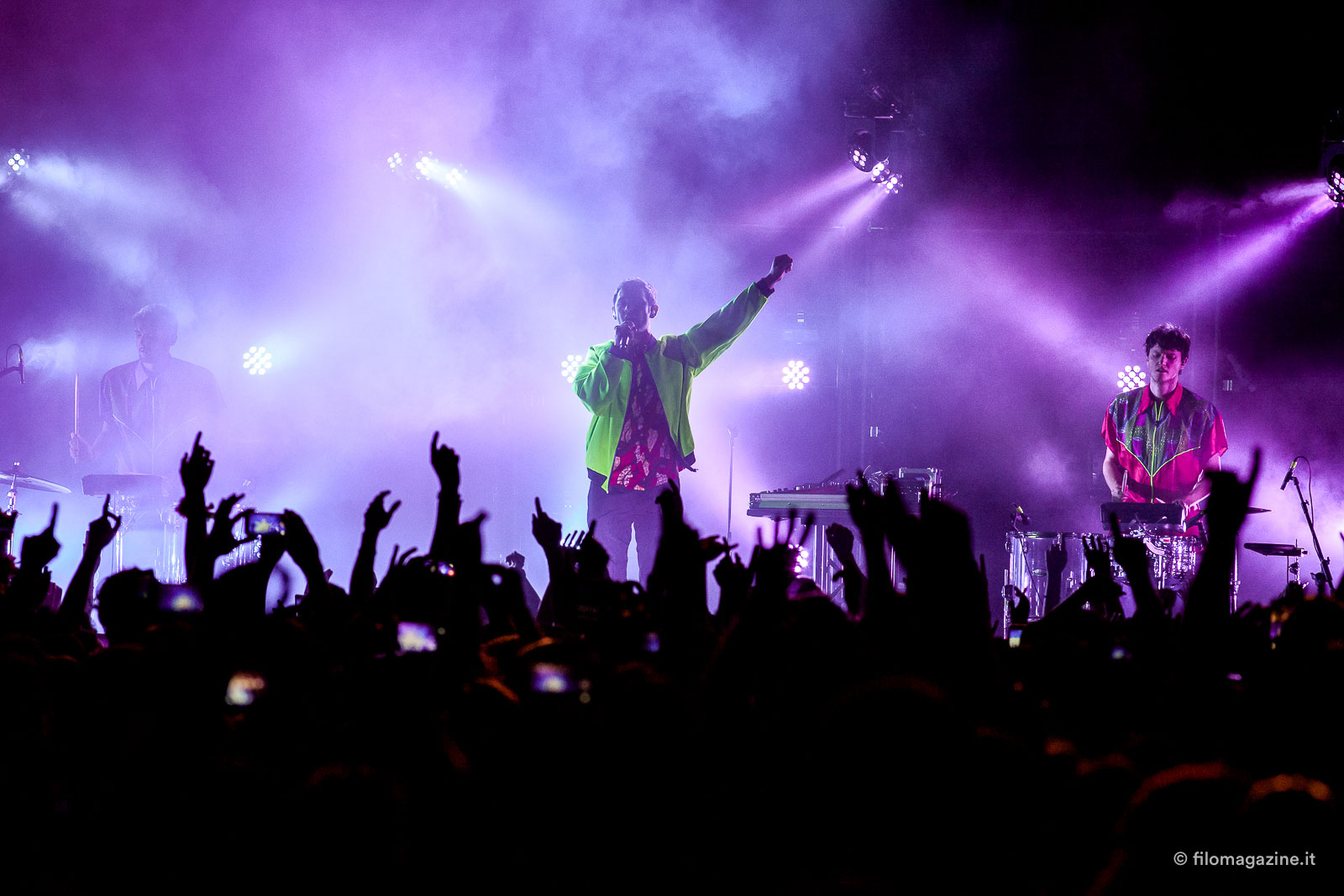 Alla fine ero esausto, arrivato a casa ho fatto giusto un passaggio veloce in bagno e mi sono buttato a letto. Prima di abbandonarmi definitivamente ho pensato a quello che mi hanno chiesto i miei senza che io fossi troppo vigile per rispondere con più di un mugugno: “Ti è piaciuto il concerto Edo?”. Difficile rispondere senza paragoni e senza nessuna conoscenza musicale. Io so che quando una canzone mi piace sento un senso di vuoto nella pancia che sale fino alla punta del naso che inizia a pizzicare fino a farmi lacrimare gli occhi. Succede proprio così e allora mi accorgo che una canzone mi piace. Ecco, Cosmo non mi fa pizzicare il naso, però mi fa pizzicare i piedi per cui non riesco a tenerli fermi e devo per forza ballare anche se sono stanco da non reggermi sulle gambe e a giudicare da ieri sera non sono l’unico a subire questo effetto.