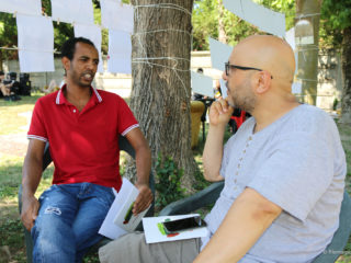 A partecipare al torneo nel campo del motovelodromo, i Buffalo Soldiers Camelot Fc, la squadra di calcio iscritta al campionato amatori Uisp, e composta da richiedenti e titolari di protezione internazionale, nell’ambito dei progetti dello Sprar. Un quadrangolare che ha registrato la presenza di altri tre team, rappresentati da Sprar Bologna, Sprar Ravenna e Atletico Brigante di Benevento. Un intero giorno fitto di attività, concluso con l’esibizione dei Camelot Combo, gruppo musicale di richiedenti asilo e rifugiati accolti nelle strutture gestite dalla cooperativa sociale Camelot. Calcio e musica, dunque, ma non solo. Prima che comincino le partite, c’è il tempo per conoscere ulteriori eventi della manifestazione. Come la biblioteca vivente, «un progetto nato in Danimarca per combattere i pregiudizi – spiega Erika Vannini – con le persone al posto dei libri», e il dialogo come strumento per conoscere le loro storie, sintetizzate da quanto indicato in copertina. O come le mostre fotografiche. «Una rientra nelle attività laboratoriali legate all’integrazione ed è composta da ritratti di ragazzi accolti, ripresi in momenti di quotidianità – aggiunge Andrea Alessandrini – mentre un’altra raccoglie foto realizzate con cellulari, e poi stampate, coinvolgendo persone con fragilità psichiche durante vari laboratori».