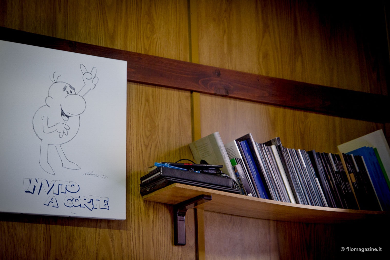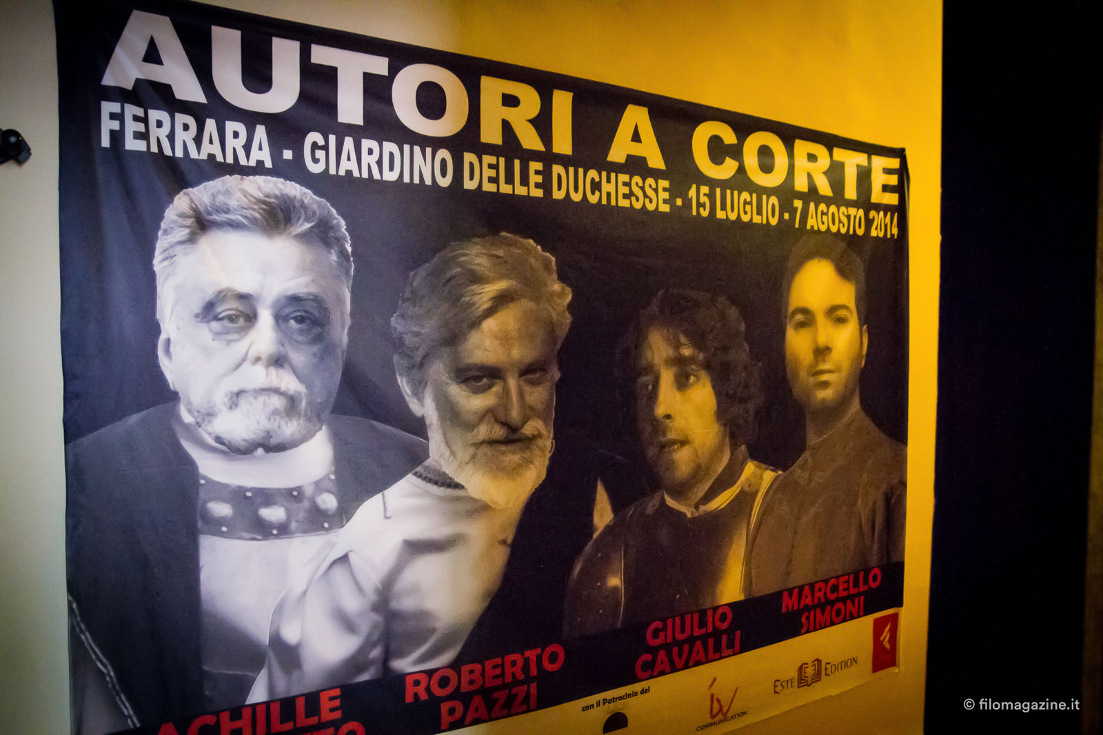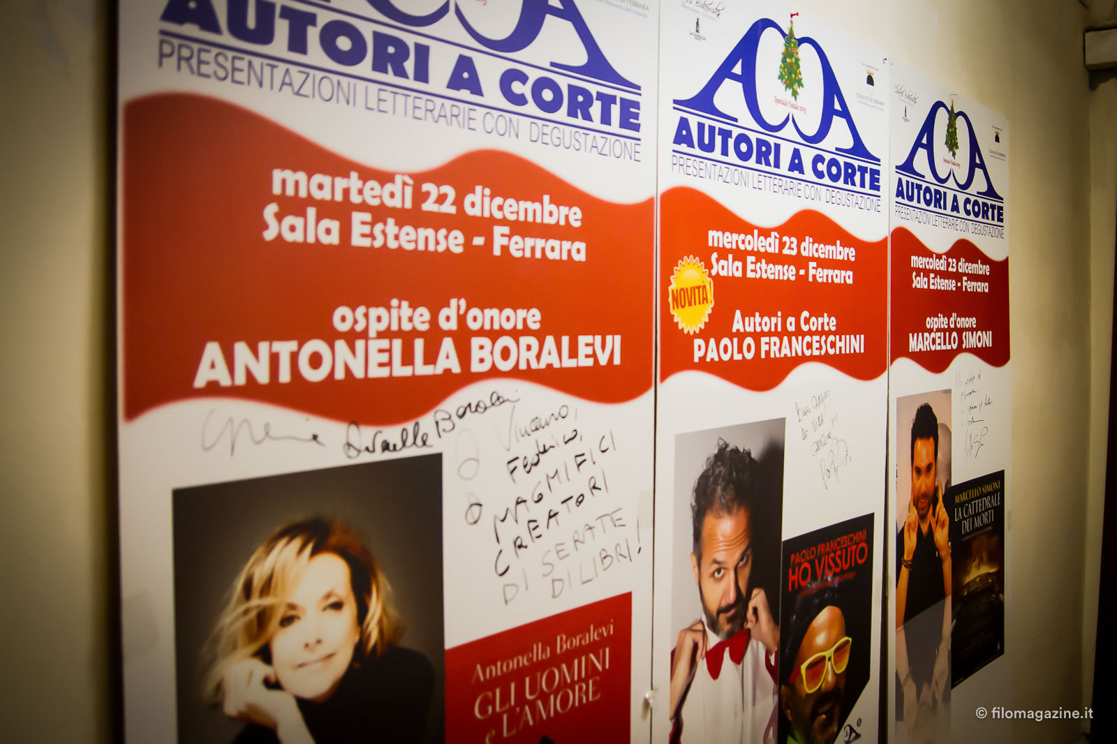 Capisco sempre più che la vita della rassegna e quella della casa editrice sono interconnesse. È stata creata la collana “Autori a corte”, che raccoglie i libri pubblicati e presentati durante gli incontri col pubblico. Vincenzo mi racconta che hanno voluto pubblicare opere di personaggi già noti al grande pubblico grazie alla loro attività principale, che però scrivono di altro: è stato sorprendente ad esempio leggere il bel libro giallo scritto dal Mago Casanova! Mi fanno vedere poi che hanno pubblicato i libri di Andrea Poltronieri, Ivan Bottoni, Paolo Franceschini, Gianni Fantoni, Dario Baruffa… personaggi ben noti ai ferraresi, che fanno parte del loro tessuto sociale e identitario.