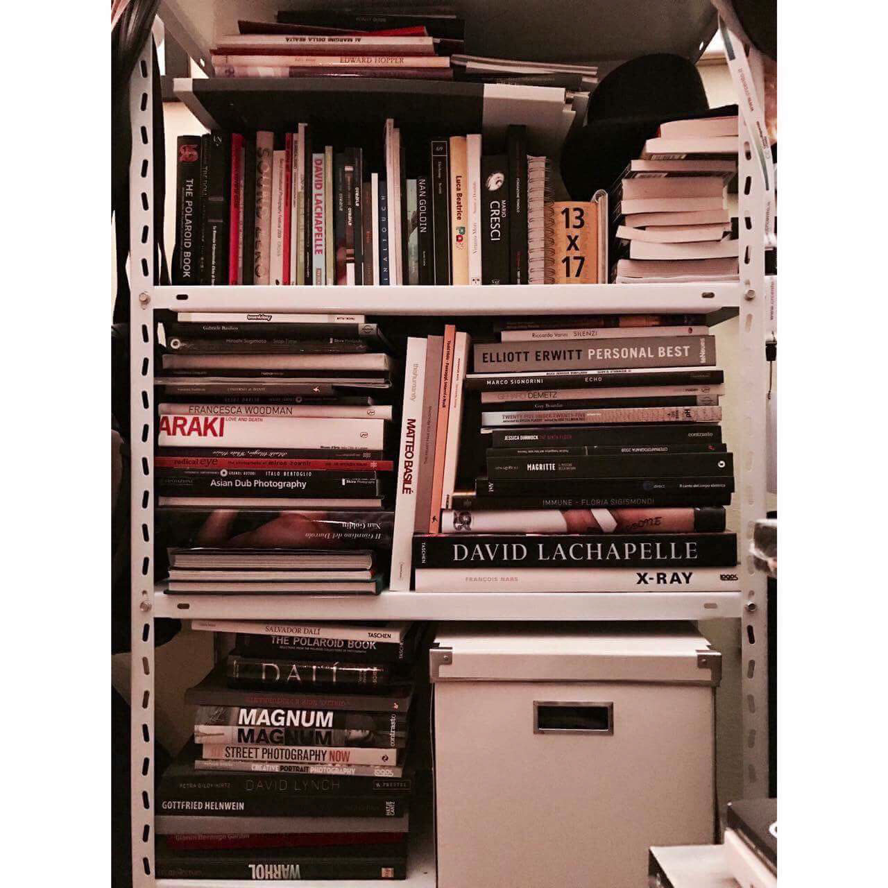 Io sono un feticista del minimalismo, ma purtroppo il mio rifugio creativo è tutto fuorché minimale. Essendo prima di tutto un lettore onnivoro, ogni spazio disponibile in casa mia è intasato da libri letti e “in lista di lettura”. Come se non bastasse, ho una parete ricoperta di cataloghi d’arte e fotografia: la mia sorgente d’ispirazione che ha tenuto testa anche all’avvento del digitale. Google è una fonte di stimoli e suggestioni infinita ma vuoi mettere il piacere di sfogliare un catalogo? Odorarne la carta, la consistenza… quando voglio rilassarmi non trovo di meglio che spulciare nei miei archivi fotografici. A parte questo delirio cartaceo, nella mia stanza non ci sono animali impagliati o feti in formalina, però anch’io ho il mio piccolo teschio con tanto di cilindro e una stampa originale di Masao Yamamoto, donatami dal maestro stesso quando ebbi l’onore di conoscerlo di persona a Verona.