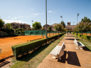 Arrivo al Tennis Club Marfisa in bicicletta, un sabato mattina soleggiato. Un monumento al tennis, un pezzo di storia cittadina. Appena dentro le mura, ci si accede da via Saffi, una piccola via incastonata tra la Palazzina Marfisa d’Este e Palazzo Bonacossi alle spalle di corso Giovecca. Da innamorata di Ferrara e di tutto ciò che emana valore storico e umano, sono affascinata e curiosissima. Al mio arrivo mi colpisce subito il silenzio pressoché totale e la sensazione che qui i minuti e le ore siano come sospesi: in tutti i campi giocatori impegnati nei rispettivi match, si sente solo il toc-toc ritmico e ripetuto all’infinito delle palline rimbalzate di qua e di là dalla rete. È un’atmosfera surreale, se penso che mi sono appena lasciata alle spalle il brusio del centro storico.