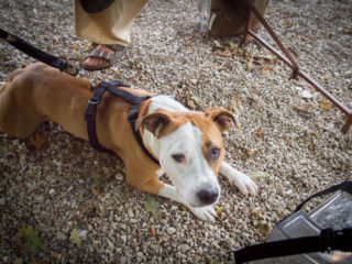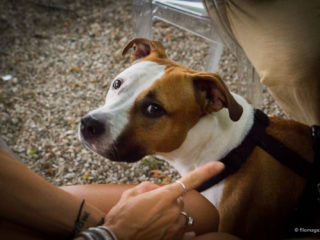 Contattare l’autrice della pagina, dicevo, ha richiesto un lavoro estenuante fatto di messaggi, chat, whatsapp, un lavoro che ha corso sul sottile confine che divide le normali ricerche dallo stalking. La svolta c’è stata quando ho trovato il giusto punto su cui fare leva: Smita. Smita è la coprotagonista delle avventure di Paconpoco, una meravigliosa esemplare di pitbull. Meravigliosa sì, ma pur sempre pitbull, dettaglio non da poco per chi, come me, non è molto a suo agio con i grossi cani. Sprezzante del pericolo però, ho proposto a Pancopoco di accompagnarla durante una passeggiata con Smita e centro! Dopo due giorni avevamo un appuntamento al parco urbano. È stata la pitbull la prima ad accogliermi abbaiando fragorosamente e io non ho potuto fare altro che affidarmi alla saggezza popolare circa i cani che abbaiano raggiunta dal suo naso umido e curioso e dalla coda festosamente agitata. Dietro Smita, impegnata con tutte le sue forze a tenere il guinzaglio e contenerne l’entusiasmo, finalmente c’era Paconpoco.