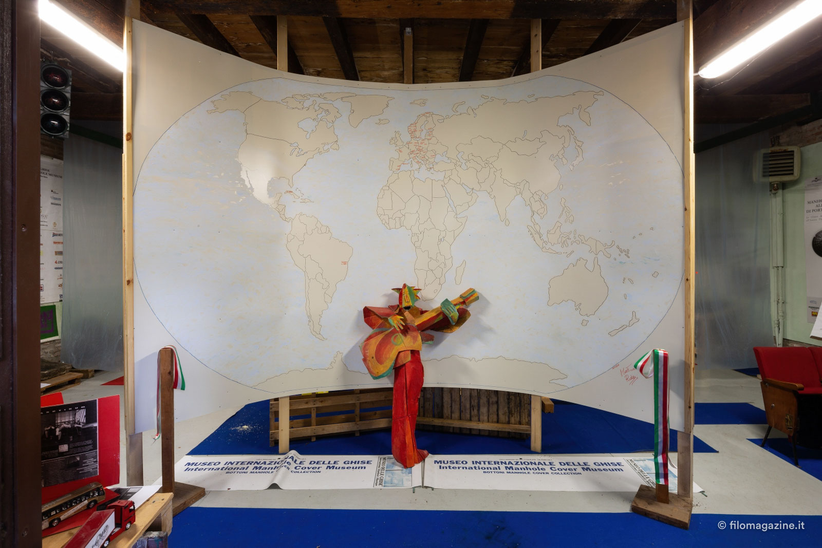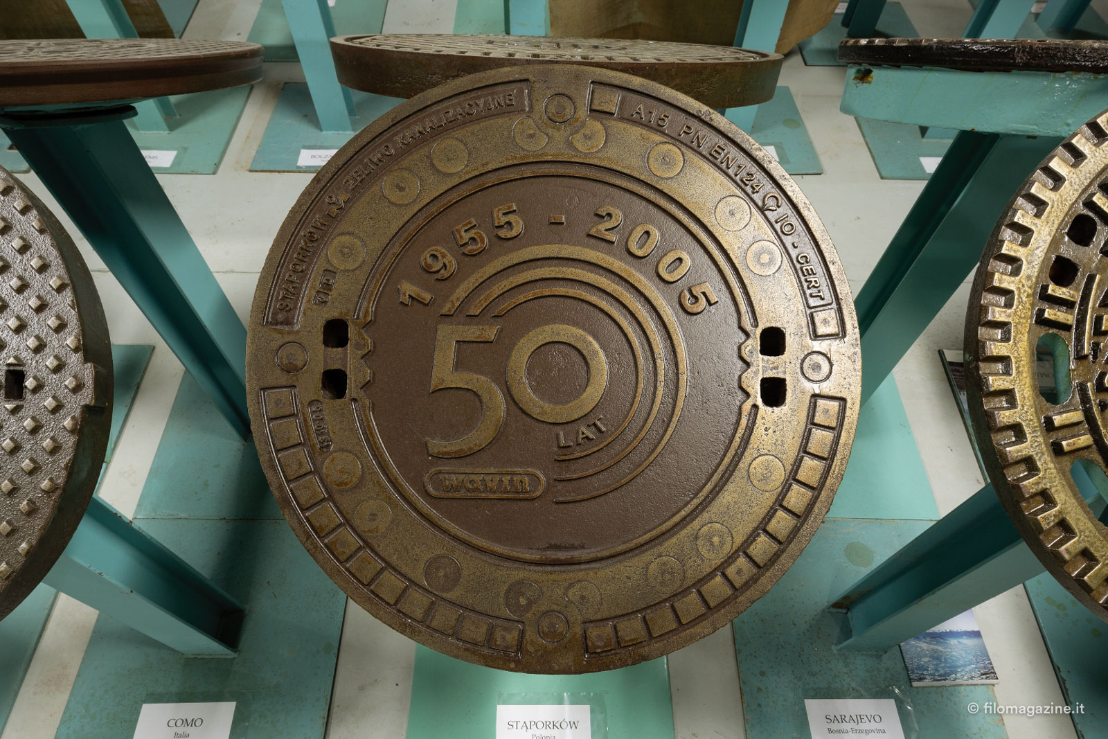 Interpellato e prontissimo, Modonesi ci spiega: “Come sempre, quando Stefano presenta un’ idea, un progetto, si rimane trasportati dall’entusiasmo e dalla sua voglia di realizzarlo. Questo suo modo di illustrarti le cose mette, quasi fin da subito, in secondo piano i dubbi sorti al pensiero del raccogliere in giro per il modo ghise e tombini per farli divenire oggetti museali. Penso fossero trascorse appena un paio di settimane dalla presentazione dell’idea (e dalla mia disponibilità nel sostenerla) al giorno in cui vidi Stefano ritornare nel mio ufficio con una bozza di lettera e un primo indirizzario di almeno una trentina di municipalità alle quali richiedere gratuitamente la spedizione dei chiusini. E, non solo con il mio stupore ma sicuramente anche con quello di Bottoni, quasi fin da subito abbiamo ricevuto delle risposte assolutamente positive. E da lì, lettera in lettera, tombino in tombino, siamo arrivati alla creazione del nostro Manhole Museum.”