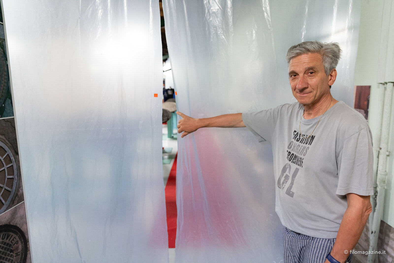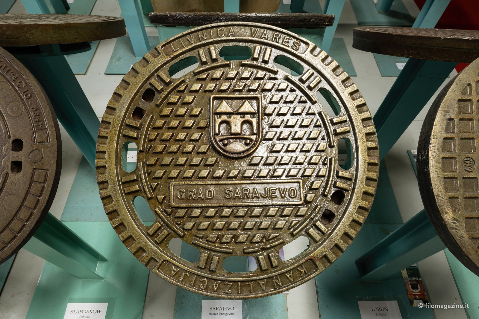 Mentre Andrea si prepara per immortalare i suoi inconsueti modelli, Stefano racconta: “Sai cara, questa è l’unica collezione di tombini al mondo. Arrivano da Aarhus, Bruges, Kristiansand, Magdeburg, Sarajevo, Zurigo…