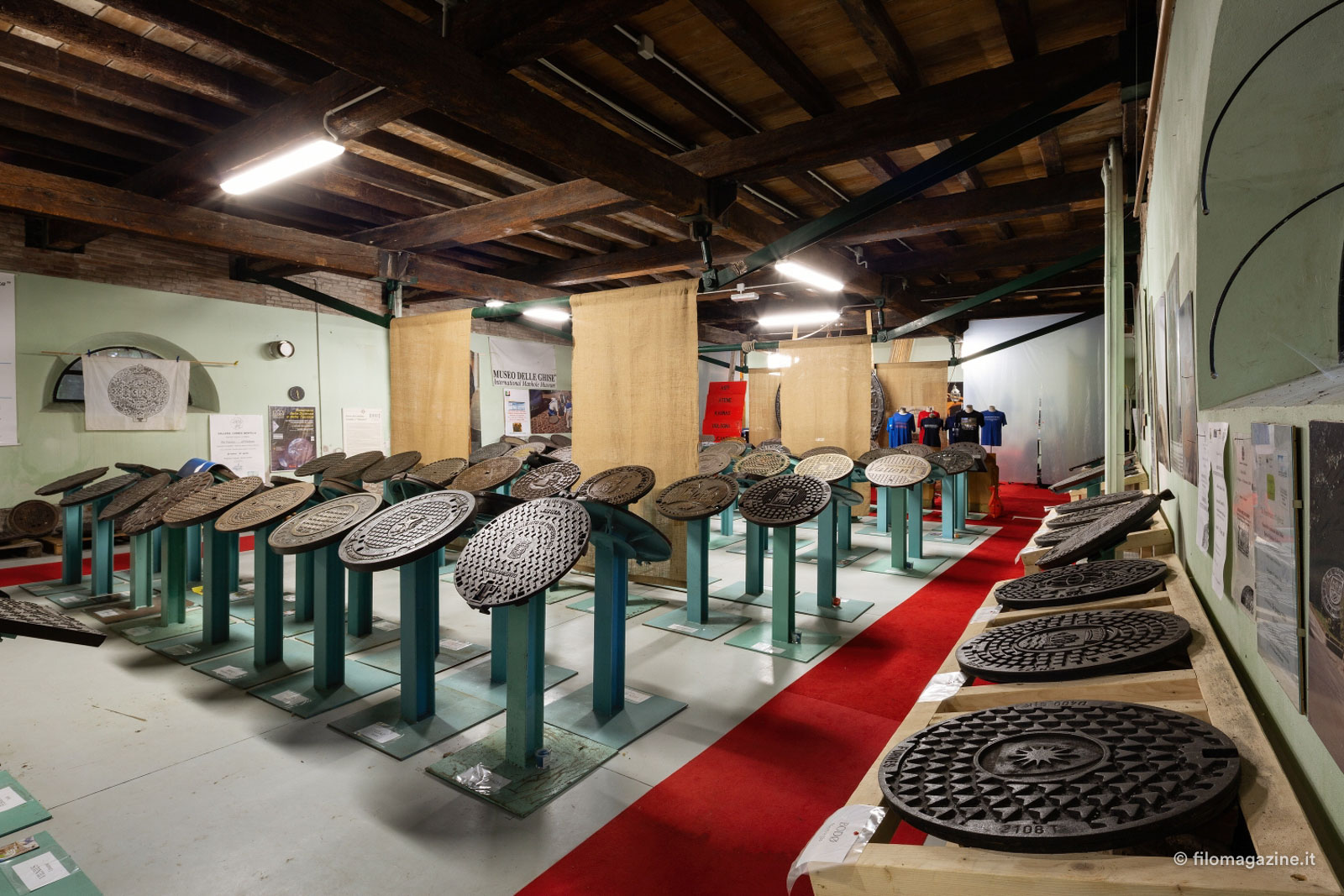 Vorrei infatti presentarvi non uno, non due ma cento e più chiusini diversi, tutti raccolti con estrema attenzione, amore e cura nelle sale di quello che negli anni ’20 del Novecento fu un magazzino di legno e carbone e che ora si reinventa come sfondo di una delle collezioni più peculiari al mondo. Siamo in via Baluardi 125, vicinissimi al Monastero di Sant’Antonio in Polesine e ci accingiamo a visitare l’ International Manhole Museum. O la Bottoni Private Collection, che ha quel tocco chic che fa sempre effetto. Ad aprire la porta di questo luogo surreale, è il suo custode, Stefano Bottoni, meglio conosciuto come il papà del Buskers Festival.