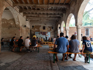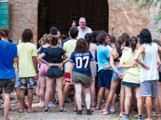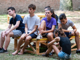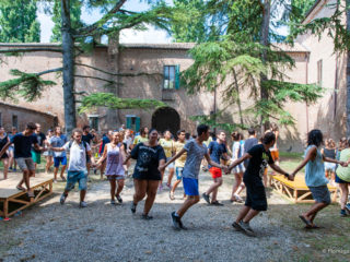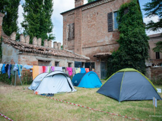 Appena arrivata vengo accolta da Stefano Muroni, l’ideatore di questo progetto, che mi accompagna per un tour intorno alla Villa mostrandomi gli accampamenti e raccontandomi un po’ cos’è il Campus. Inizia con questa frase: << In un’epoca in cui si costruiscono muri noi abbiamo cercato di costruire dei ponti >>. Mi spiega poi che quest’anno hanno raggiunto un record di presenze: 75 ragazzi provenienti da 8 regioni italiane e da vari paesi Europei come la Russia, e persino una ragazza proveniente dal Guatemala. Il sogno di Stefano è di arrivare a 150 ragazzi. La scelta di Villa della Mensa come location, oltre a portare risalto al territorio, è stata pensata perché venne costruita circa nello stesso periodo in cui nacque la Commedia dell’Arte, che talaltro si sviluppa proprio attorno al territorio della Pianura Padana.