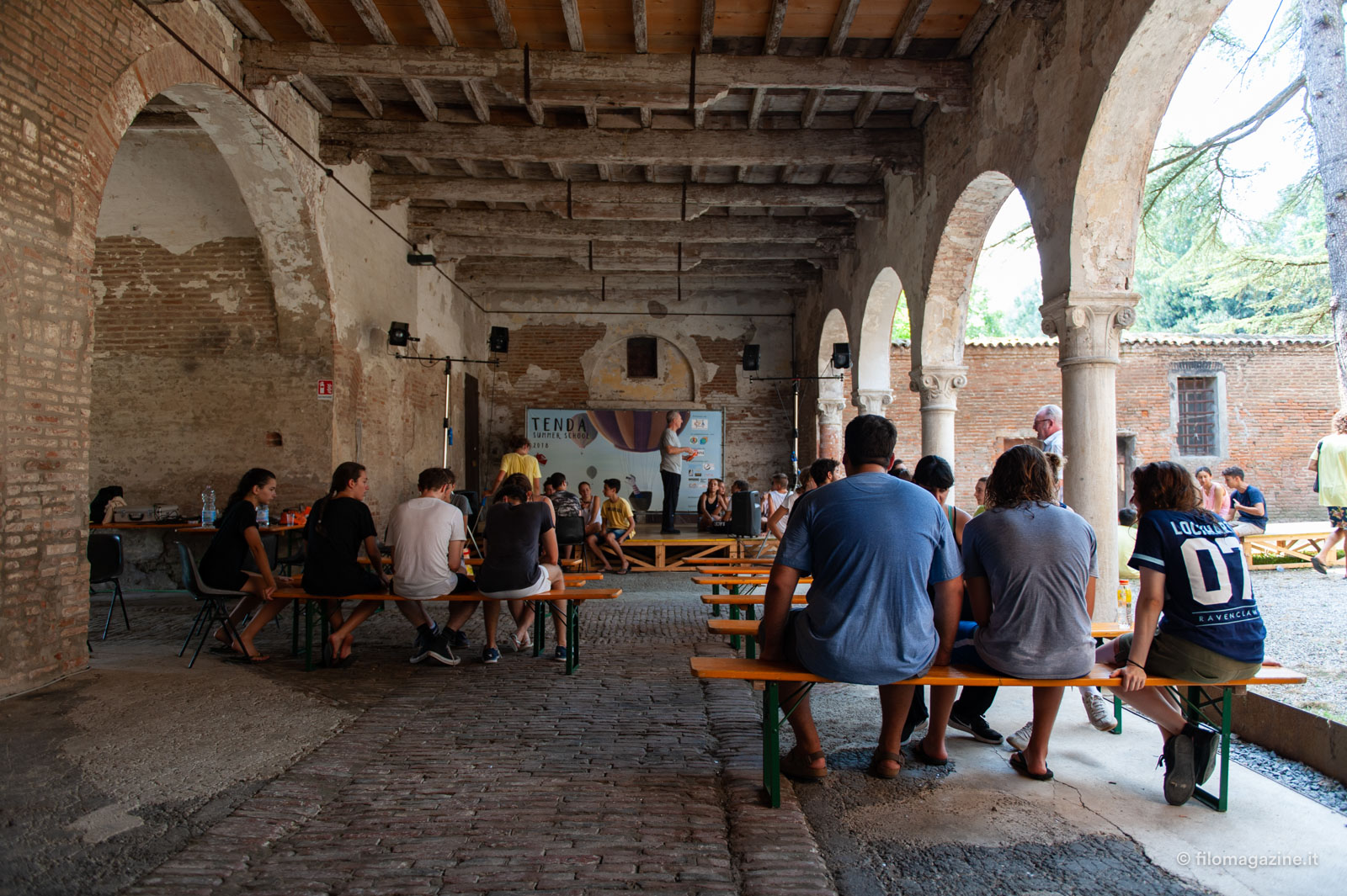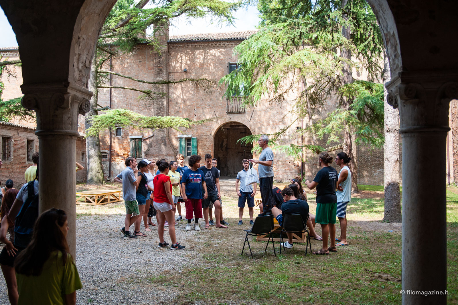 Appena arrivata vengo accolta da Stefano Muroni, l’ideatore di questo progetto, che mi accompagna per un tour intorno alla Villa mostrandomi gli accampamenti e raccontandomi un po’ cos’è il Campus. Inizia con questa frase: << In un’epoca in cui si costruiscono muri noi abbiamo cercato di costruire dei ponti >>. Mi spiega poi che quest’anno hanno raggiunto un record di presenze: 75 ragazzi provenienti da 8 regioni italiane e da vari paesi Europei come la Russia, e persino una ragazza proveniente dal Guatemala. Il sogno di Stefano è di arrivare a 150 ragazzi. La scelta di Villa della Mensa come location, oltre a portare risalto al territorio, è stata pensata perché venne costruita circa nello stesso periodo in cui nacque la Commedia dell’Arte, che talaltro si sviluppa proprio attorno al territorio della Pianura Padana.