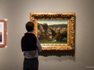 Lo immaginiamo oggi, Courbet, con le mani sporche di colore ma prima ancora di fango, con le dita colorate dalle mille sfumature di quei verdi che utilizza per rappresentare la sua natia Ornans e che si intonano perfettamente con i toni scelti per le pareti-sfondo del Museo. L’atmosfera, quadro dopo quadro, è distesa, nonostante le mille inquietudini nutrite dall’artista.