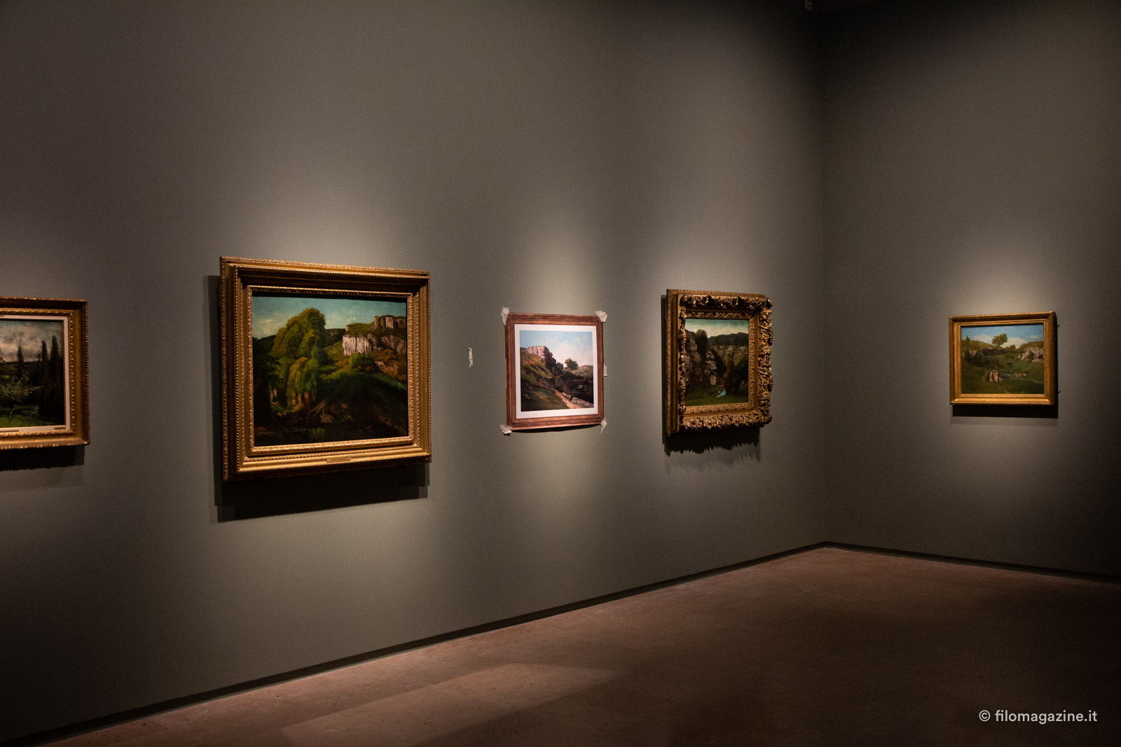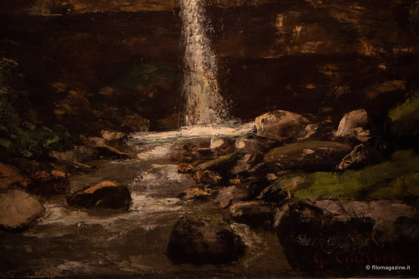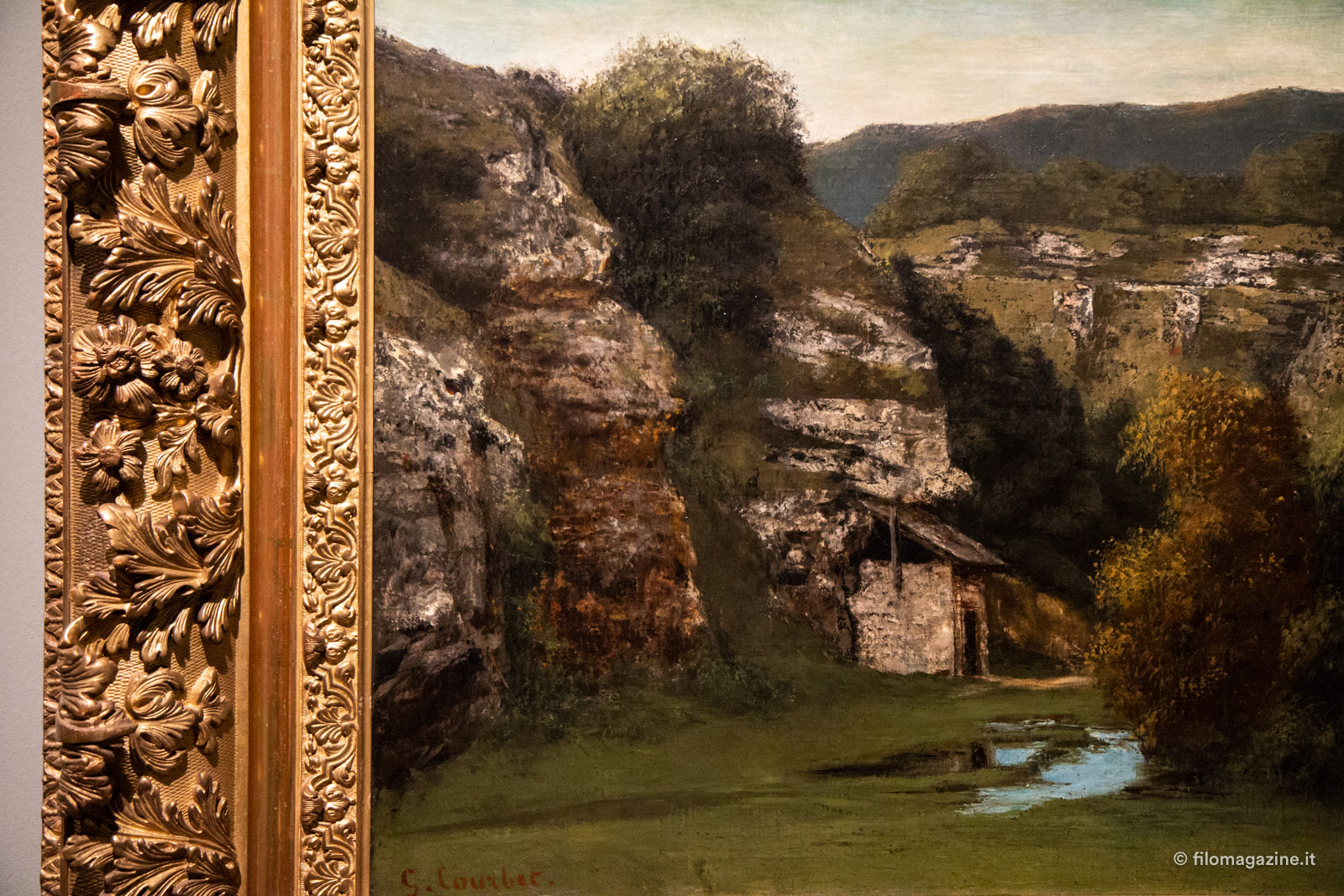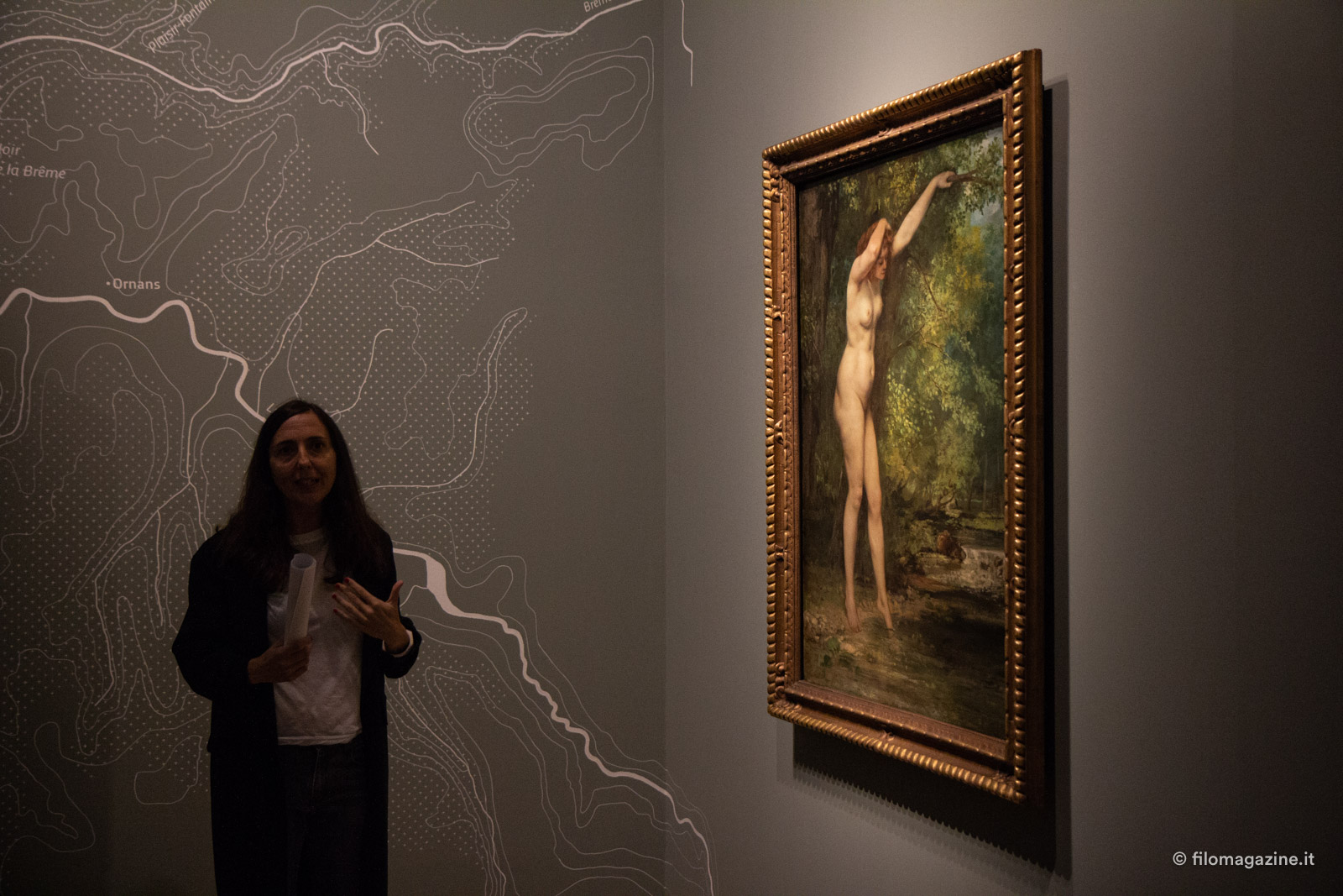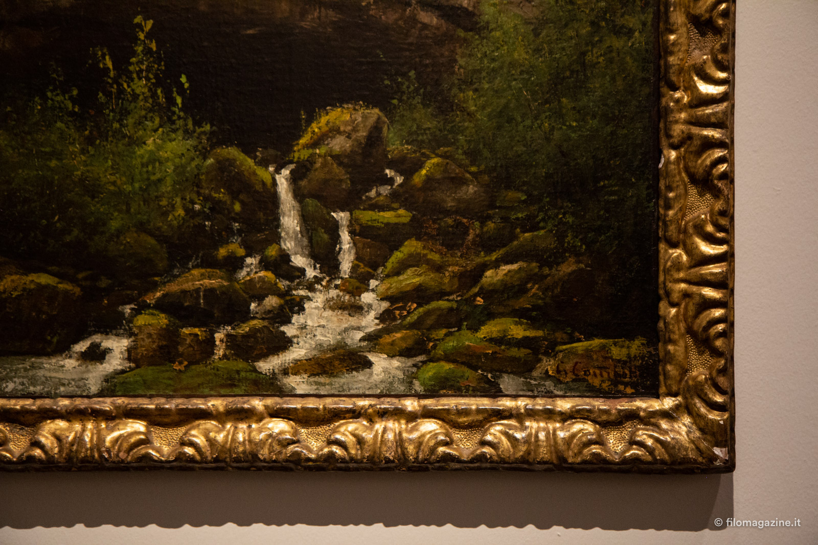 Lo immaginiamo oggi, Courbet, con le mani sporche di colore ma prima ancora di fango, con le dita colorate dalle mille sfumature di quei verdi che utilizza per rappresentare la sua natia Ornans e che si intonano perfettamente con i toni scelti per le pareti-sfondo del Museo. L’atmosfera, quadro dopo quadro, è distesa, nonostante le mille inquietudini nutrite dall’artista.