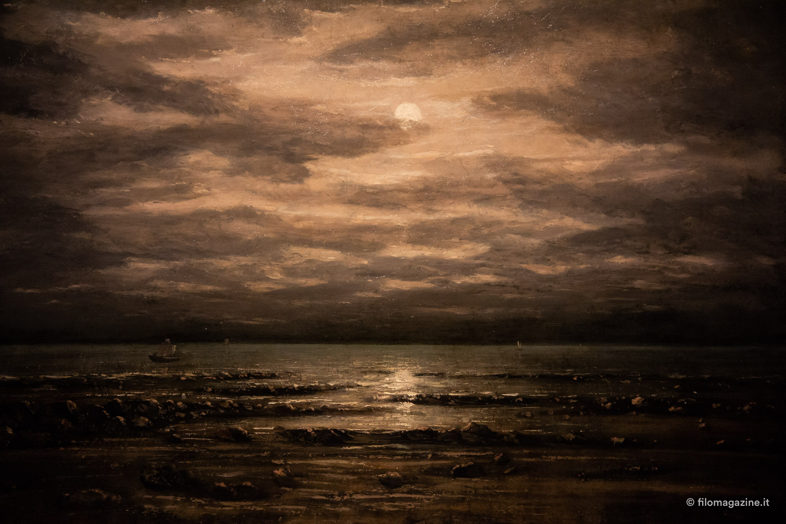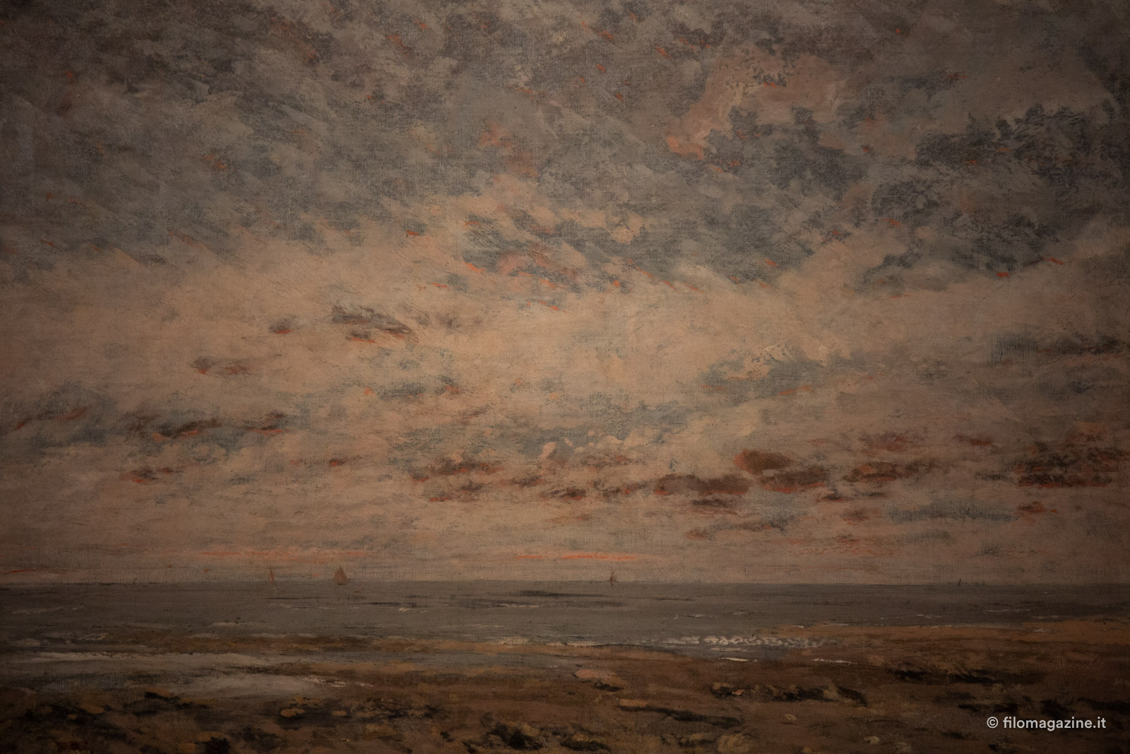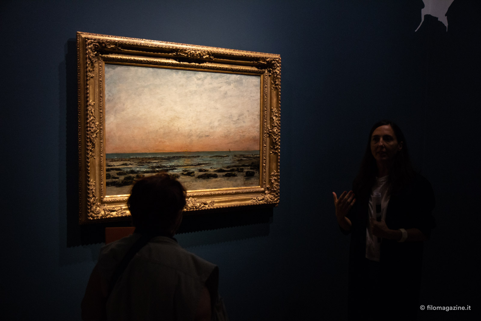 Courbet ci sfida a varcare quella soglia di sicurezza del Romanticismo, a travalicare tutte le antiquate concezioni e i canoni di quei Saloni dai quali fu tanto rifiutato. Ci invita a sporgerci, ad arrivare sull’oceano e a farci trasportare dalle onde.
