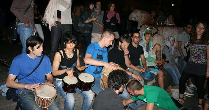 Per Eugenio Sorrentino (Italia), musicista/musicoterapeuta che si occupa di progetti di integrazione dei richiedenti asilo, le esibizioni estemporanee della Piazza hanno costituito una importante esperienza nella sua crescita umana e professionale. «Tutti i mercoledì c’erano gruppi di ragazzi e ragazze che suonavano e cantavano». Esecuzioni che coinvolgevano non solo musicisti: «Mentre noi suonavamo si creavano gruppi di curiosi che ballavano o battevano le mani a tempo di musica e apprendisti giocolieri che si cimentavano in qualche numero». Tra i partecipanti vi erano anche molti dilettanti o semplici appassionati che «si presentavano con djembe o darabouka senza la minima conoscenza tecnica o musicale, consapevoli che avrebbero trovato qualcuno che avrebbe insegnato loro a suonarli».