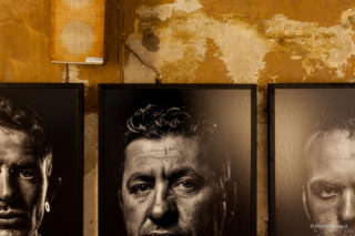 I suoi ritratti dei dodici pescatori, apostoli di una pesca dai rigori quasi religiosi, si alternano sulla parete destra in sguardi intensi, stanchi, provati dopo una giornata di lavoro. Due, colpiscono la mia attenzione. “I due subacquei, neanche a farlo apposta”, mi risponde Francesco. Hanno il viso ed i capelli rigati di sale, cotti dal sole di un’isola che ancora rispetta le sue antiche tradizioni, che attraverso quella che ci sembra una pratica oltremodo crudele, si rifiuta di alterare un equilibrio fondamentale, di oltrepassare quello che è davvero l’ultimo confine.