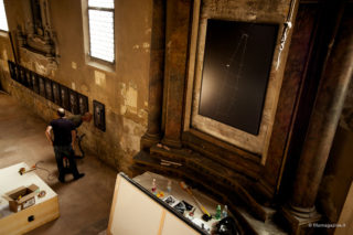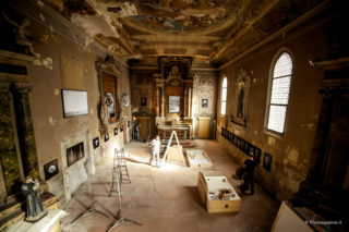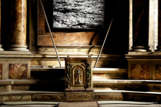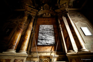 Immagini che si alternano tra astratti marini e icone sanguigne, tra pale d’altare spoglie e statue menomate, in una chiesa in cui la luce gioca con le ragnatele e i ricordi di chi, in questi giorni, non ha esitato a varcare la soglia. La porta socchiusa di San Giuliano rappresenta un invito taciuto, in queste mattine d’allestimento. I passanti si alternano curiosi e accolgono, domandano.