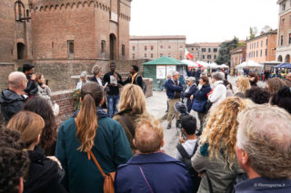 Passando per Piazzetta Savonarola, tra le bancarelle del mercatino del weekend, non possiamo che non soffermarci su di un simbolo della città estense: Girolamo Savonarola. La statua non è tra le più belle sculture che conserviamo a Ferrara, ci fa notare la nostra guida Chiara. Ma è una statua fortunata, per la posizione di quelle braccia immense che l’hanno resa famosa. Un detto ferrarese la omaggia “lasa lì a dmandàr, angò brisa al bràzz ad Girolamo Savonarola”.