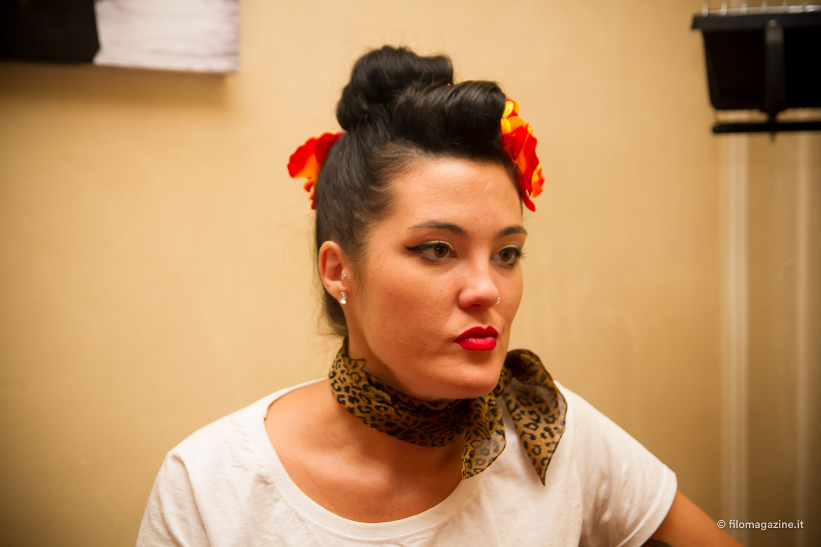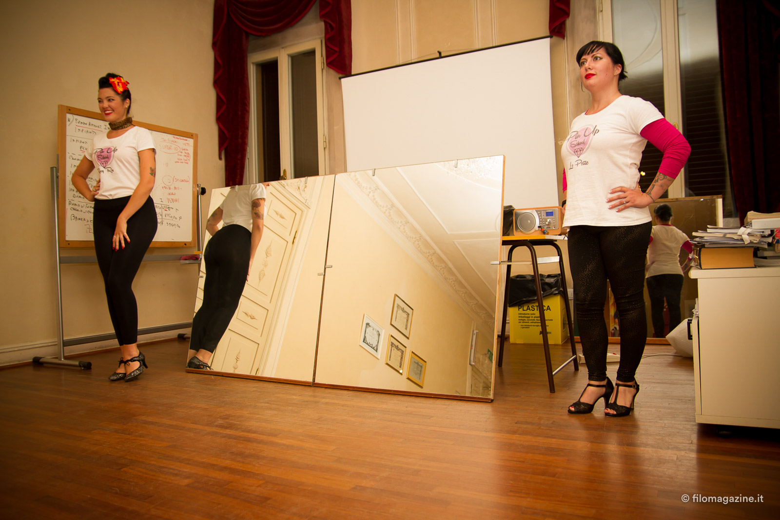 Parlare con Manuela, o meglio ascoltare Manuela, ha un che di ipnotico e ammaliante, è certamente riuscita a portare quello che lei definisce un’attitudine, un dono di natura, a livelli così alti che frasi come “bello fuori è bello dentro”,”fai dei tuoi difetti la tua forza”, non così innovative, dette da lei mi sono apparse delle rivelazioni illuminanti. Ho continuato per buona parte del tempo a riempire il mio quadernetto di frasi motivazionali che mi venivano mitragliate a raffica con esotico accento spagnolo, ma sempre con una certa sensazione in sottofondo. Il sospetto di trovarmi di fronte all’ennesimo corso che mi illude di far sbocciare il vero talento che è in me e mi condurrà alla realizzazione della felicità suprema: è già successo quando pensavo di avere dentro una ballerina classica, poi è stata la volta della grande rugbista, poi del cuoco stellato o la volta della pittrice già in odore di Louvre. Vuoi mai vedere che invece dentro di me, sepolta da strati di vestiti tre taglie più grandi del necessario, c’è niente meno che una pin up che scalpita?