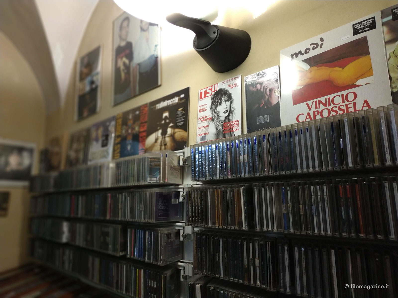 Nella vetrina principale, da anni e suddivise in categorie riconoscibili (metal, classici, produzioni indipendenti, dischi italiani) ci sono i CD, ma dentro non manca lo spazio per i vinili, le musicassette e addirittura le VHS che capeggiano curiosamente su una delle vetrine in angolo.
