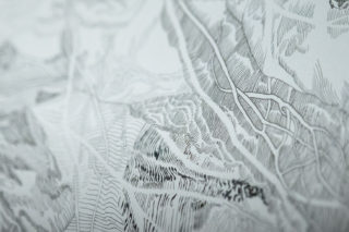 Lasciata l’ultima sala alle nostre spalle, il bookshop ci accoglie affollato e l’entrata dell’Offside si popola di curiosi. Davanti a noi, una quinta monumentale, una foresta di cartone che si arrampica sulla parete bianca, creando giochi di luci ed ombre che si insinuano soavi tra i ritagli di un’opera dai dettagli minuziosi. Porzione di un’installazione precedentemente ospitata nel cuore di Parigi, la Forêt ci trasporta in un universo sognante, facendoci dimenticare la profondità visibilmente intangibile, conducendoci verso effimere vie di cartone, corda e filo.
