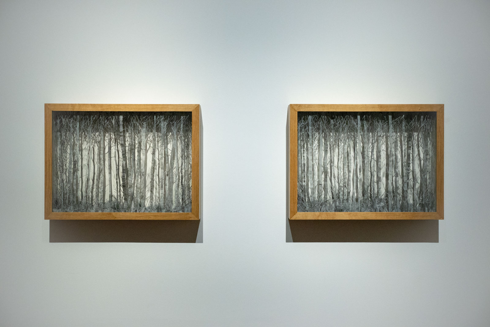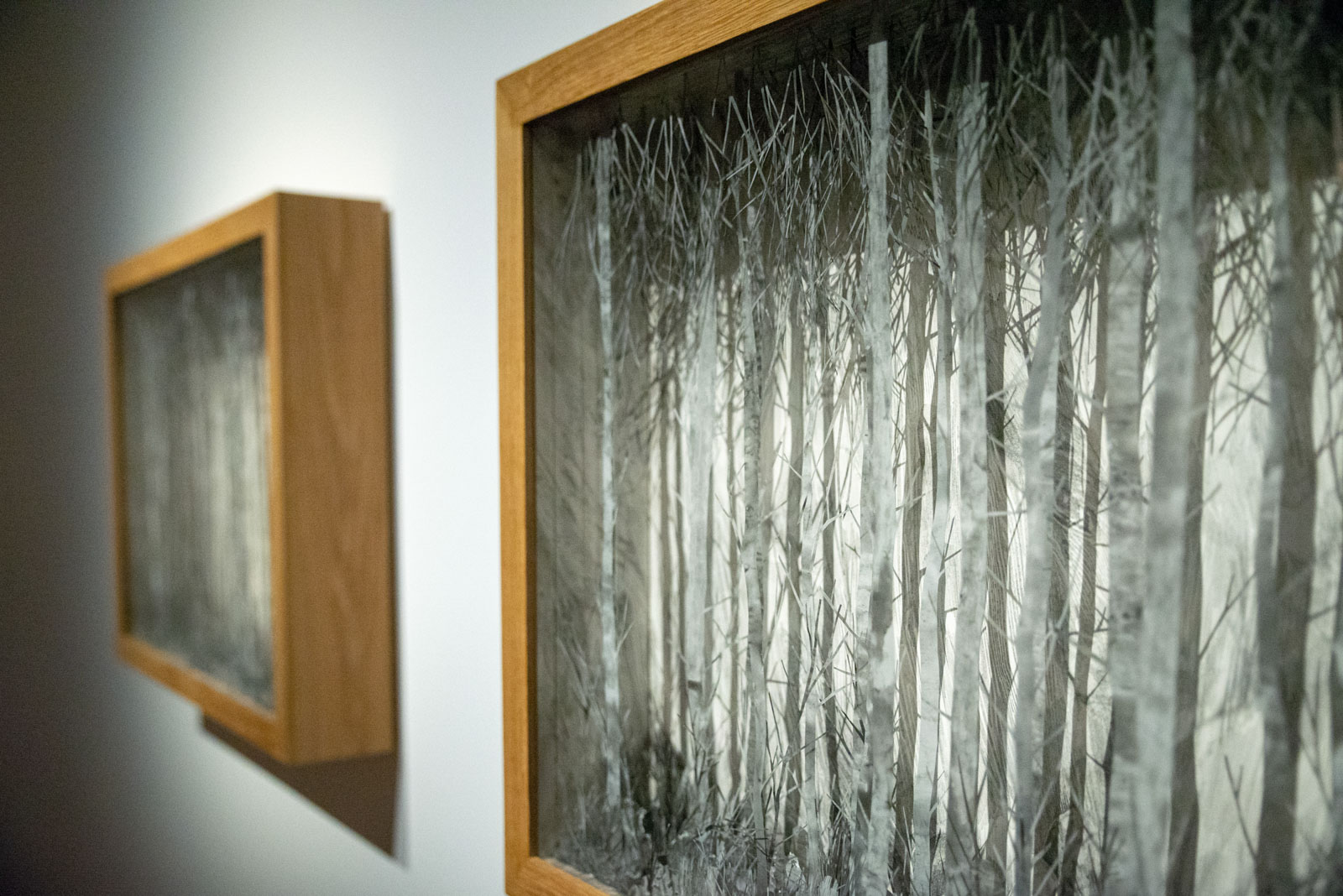 Opere di dimensioni più ridotte, dialogano con gli spettatori ricreando le illusioni ottiche di piccole Chambres Magiques naturali, illuminate dalla luce che, specchiandosi sulla superficie della carta da lucido, richiama le carezze dei raggi del sole che si stagliano tra i boschi. La Jospin, ancora una volta, ci invita a varcare la soglia della bidimensionalità dell’opera creando un panorama su più livelli, ove lasciar correre l’immaginazione e farsi guidare dalla suggestione.