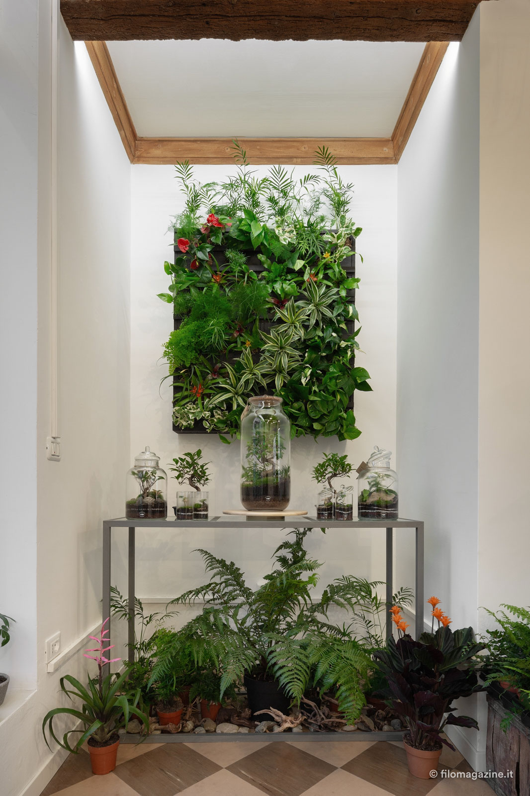 Mentre fuori la vita fa rumore, dentro, ai civici 82/84 di Viale Cavour, un ragazzo di 24 anni crea piccoli mondi verdi racchiusi in bocce, ampolle, damigiane, barattoli e antichi vasi da farmacia. Il suo obiettivo è invadere di verde e di poesia i salotti ferraresi, le botteghe, le vetrine, i locali della città.