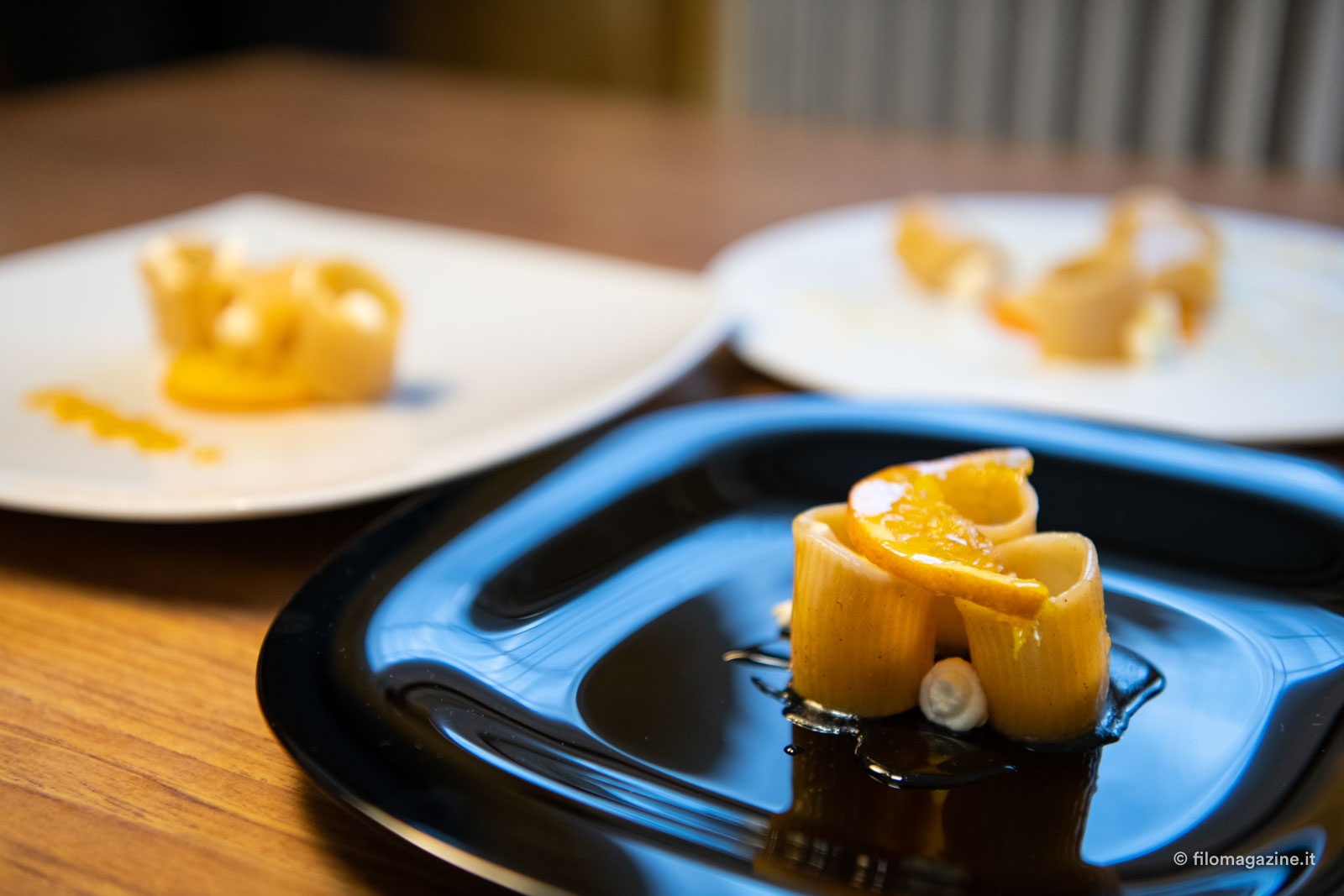 Mentre Bertho ci accenna dei complimenti ricevuti dal suo professore del Vergani, al quale attribuisce il merito di avergli scaldato il cuore e d’averlo scosso da uno stato di confusione e delusione dandogli le conferme delle quali aveva estremo bisogno, si alza, prende dei piatti e inizia a combinare qualcosa. Pochi secondi e davanti a me sento un profumo di agrumi, d’arancia…e di pasta!