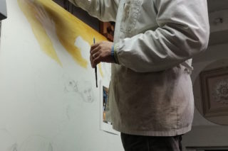 “L’idea era quella di aprire gli studi e lasciare liberi i cittadini di girare al loro interno – racconta Caterina – ma non è semplice, sono spazi privati, intimi… senza una guida perdono di significato e l’accesso casuale e continuo impedisce agli artisti di spiegare dal principio il proprio lavoro.” Così nasce la necessità di accorpare alcuni studi per prossimità, all’interno del centro storico, dove gli studenti del Dosso Dossi possano accompagnare piccoli gruppi di 10 persone per volta ad incontrare l’artista. Cinque percorsi di quattro o cinque studi ciascuno, accessibili a tutti inclusi bambini, con partenze ogni due ore durante entrambe le giornate.