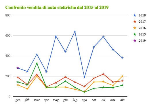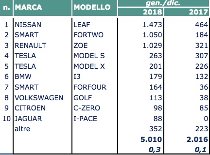 Quasi cinquemila auto vendute nel 2018, con un aumento del 148% rispetto allo scorso anno, dicono i dati di gennaio 2019, nonostante l’attesa per gli incentivi e la caduta generale del mercato dell’auto.
