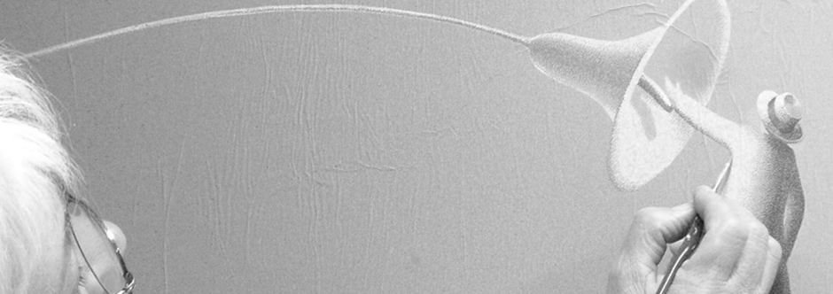 Marcello ci racconta essere un ingegnere la mattina e un artista il pomeriggio. I suoi disegni sono di grande formato e di solito sono animali, soprattutto insetti. Da una settimana sta disegnando un grillo campestre. Ciò che colpisce è però la sua tecnica: una penna bic. Ci dice che gli piacciono molto gli insetti e per disegnarli perfettamente utilizza foto, ma anche video. Gli piace dar rilievo ai dettagli, ecco perché predilige gli insetti, per noi sono piccolissimi. A volte, dice, “per disegnarli mi immergo nella loro vita e penso anche a quale possa essere la causa della loro morte”. Nei suoi disegni prima stende l’insieme, e il chiaro scuro alla fine, per armonizzare il tutto. Prima di salutare anche Carrà, portiamo via tre cartoline con i suoi disegni, lasciate a disposizione dei visitatori.