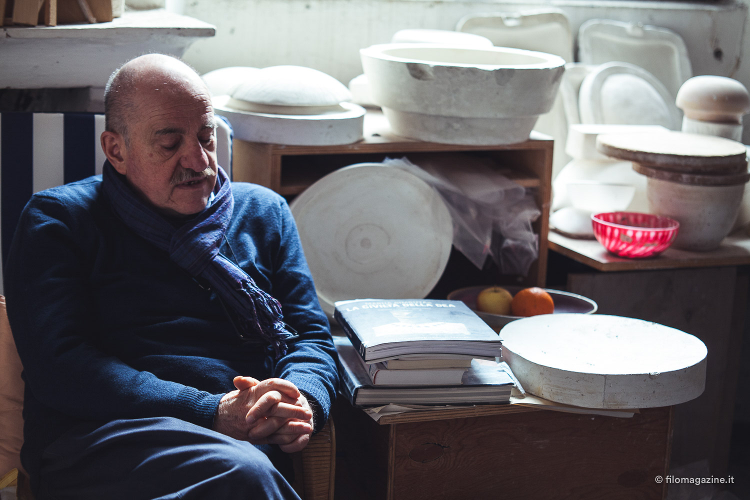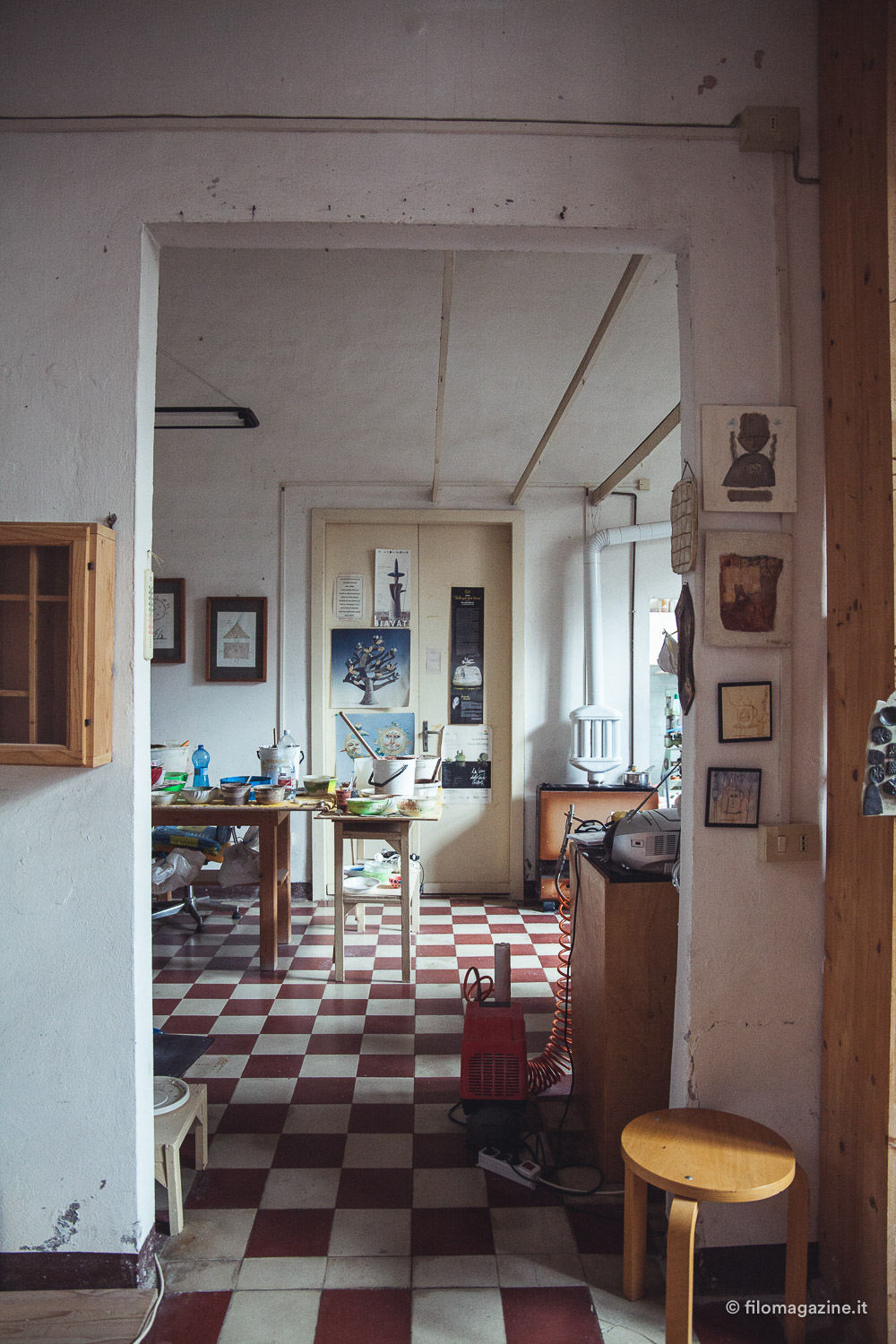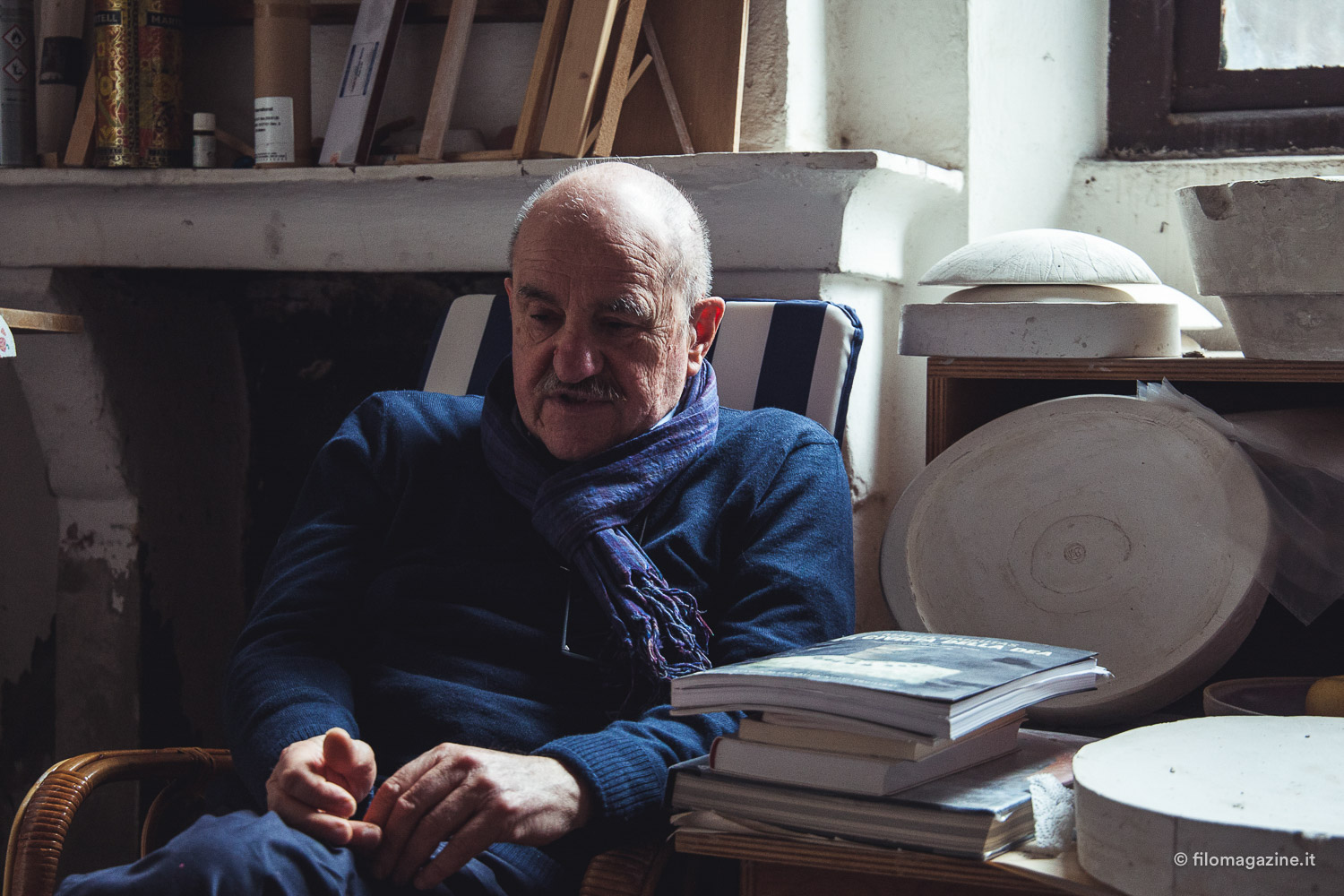 Lo studio è parte della mia vita. Mi sento in obbligo di uscire di casa e venire qui, ne sento la necessità. Ma parlo dell’atelier in quanto luogo dedicato al lavoro in generale. Questo posto in particolare non ha mai influito nel processo creativo, se non fosse questo, il mio studio sarebbe un altro. Sono qui da 40 anni e mi va benissimo ma forse, potessi scegliere, preferirei uno studio con un grande spazio aperto adiacente, per cuocere all’esterno. Ad ogni modo è uno spazio che deve avere alcune caratteristiche specifiche: deve essere a piano terra, anche per questioni legali, per i forni molto pesanti, e poi deve essere luminoso. Gli studi rimangono comunque spazi desueti e affascinanti anche se non sono che luoghi di lavoro.
