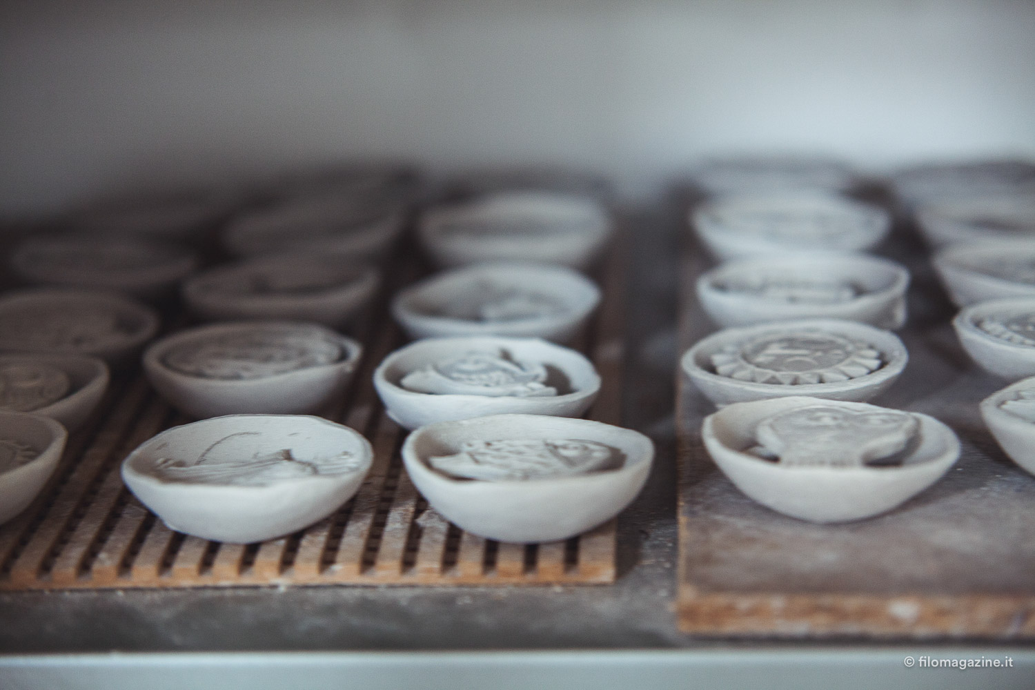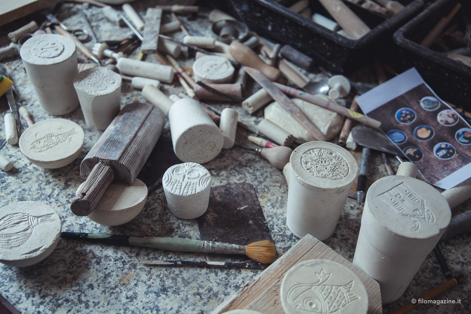 Un piccolo pezzo può essere plasmato in un’ora ma poi seguono diverse fasi, dall’essiccazione alle cotture, la biscottatura e poi il colore. Per i passaggi successivi si possono impiegare anche 10 ore. Di certo non è come fare un disegno a china che è fatto e finito in poco tempo. Il forno è una macchina che dice la sua tra l’esecutore e il pezzo finale; il suo intervento va tenuto in considerazione. L’iter completo è costoso e complesso.
