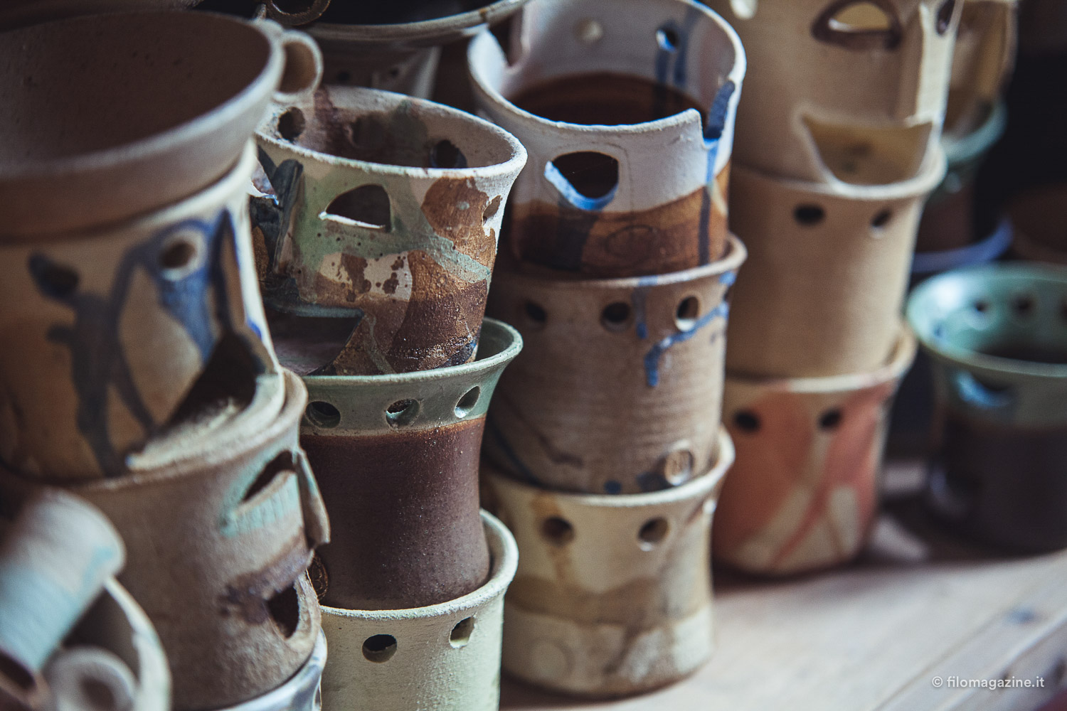 Ho scelto la ceramica perché è facilmente plasmabile, e anche cancellabile; è giocosa e alchemica. Mi piace mescolare gli elementi per creare i colori.