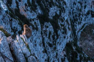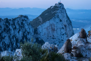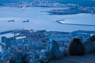 Saliamo rapidi sapendo che quando raggiungi un luogo con fatica la soddisfazione come minimo raddoppia, un’ora scarsa di semicorsa in salita tra strada e sentierini in mezzo alla fitta vegetazione e siamo in cima. Più salivamo più si abbassava la luce a nostra disposizione regalandoci un tramonto in movimento indimenticabile. Abbiamo la fortuna di arrivarci con luce più bella che l’arco delle ventiquattro abbia da offrire, quella mezzora scarsa tra quando il sole scompare dietro l’orizzonte e il buio notturno, riesco anche a scorgere un gruppetto delle famose scimmie di Gibilterra, le uniche in stato di semiliberta dell’intero continente Europeo. Se ne stanno li appese ad uno strapiombo alto più di quattrocento metri appollaiate a godersi il tramonto esattamente come facciamo noi.